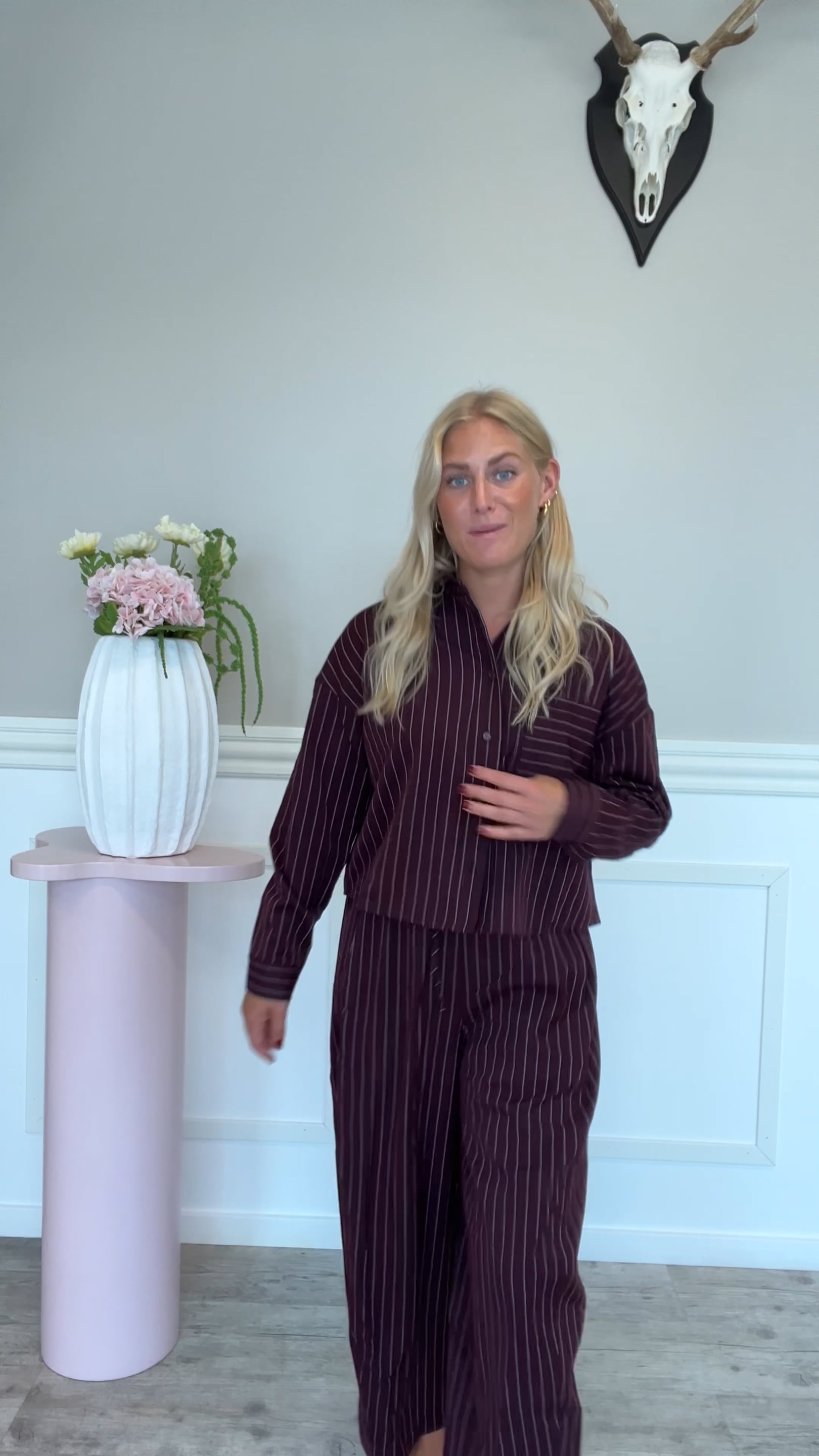 Bukser fra Ichi. Disse bukser har en super behagelig pasform, da de er brede i benene som giver en svag ballon-effekt. De er mega seje at style sammen med matchende overdel. De har elastik i taljen, som sikrer god komfort hele dagen og kan nemt styles til en hvid skjorte eller anden overdel.
