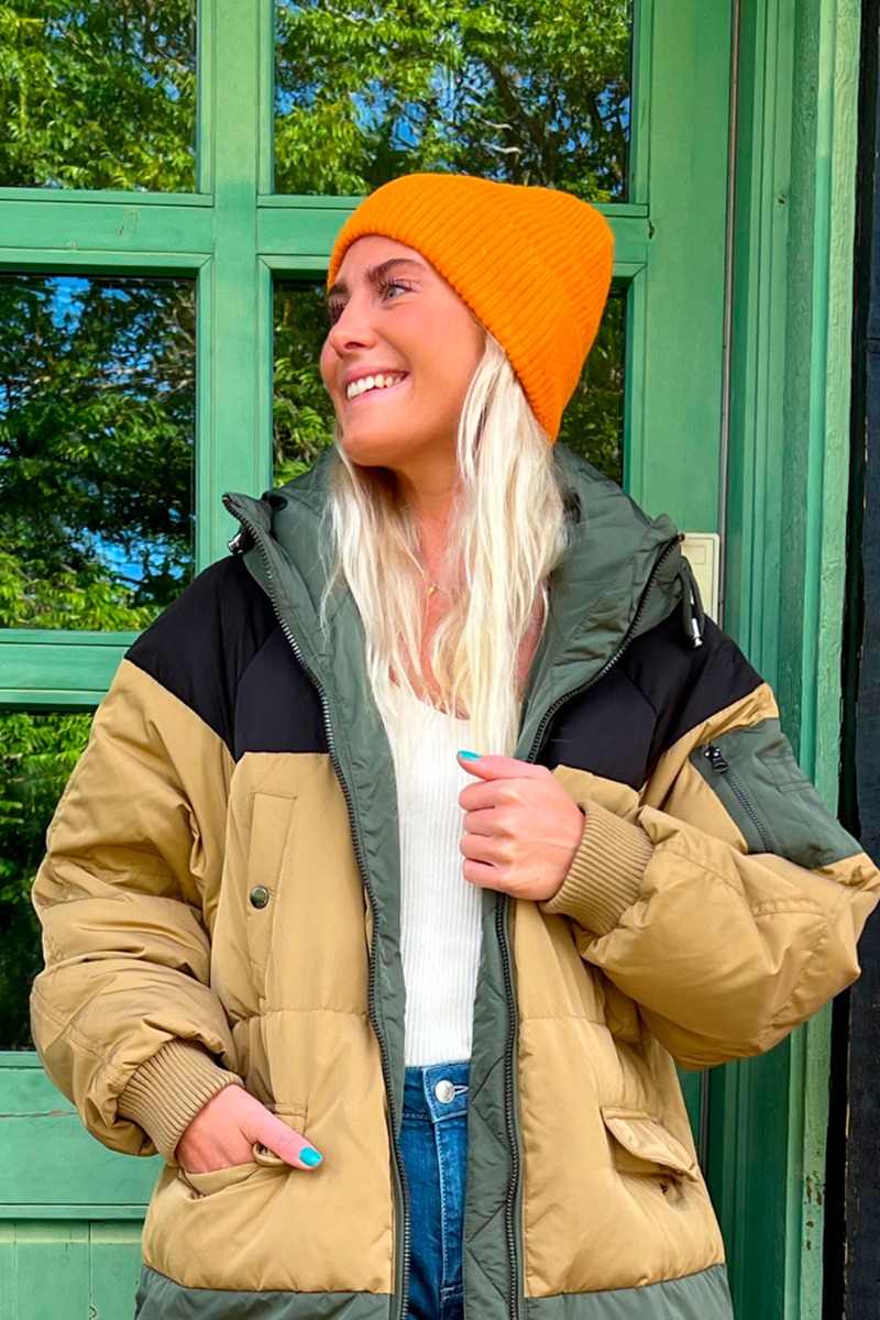 Lækker strikhue fra Ichi i en smuk orange nuance. En blød og dejlig varm hue med en foldekant og den SEJESTE farvenuance. For et fuldendt vinterlook styl med de matchende vanter.