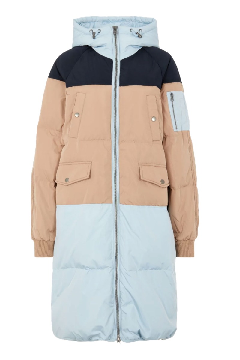 Sejeste jakke fra Ichi i colorblocking med blå og brune farver. Jakken er rummelig og har samtidig plads til en gravid mave også. Den lukkes foran med lynlås og har hætte samt ribkant ved håndleddet. Jakken er super mange seje detaljer og holder dig dejlig varm hele vinteren.
