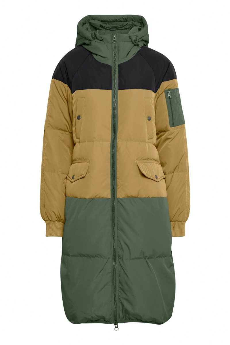 Waaauv... Denne flotte jakke er fra ICHI i tre neutrale men flotte farver. Jakken er i colorblocking design som er en af de hotteste trends, som blot betyder at farverne er skarpt opdelt. På jakken her er der armygrøn, mørk sandfarve og sort. Jakken har fem praktiske lommer og en cool hætte med snørre. Der er synlig lynlås som kan spændes op i både top og bund. Super praktisk og sej jakke i den dejligste bløde kvalitet. SÅÅ lækker! Er du på udkig efter en lækker vinterjakke med ægte dun, er den denne du skal købe.