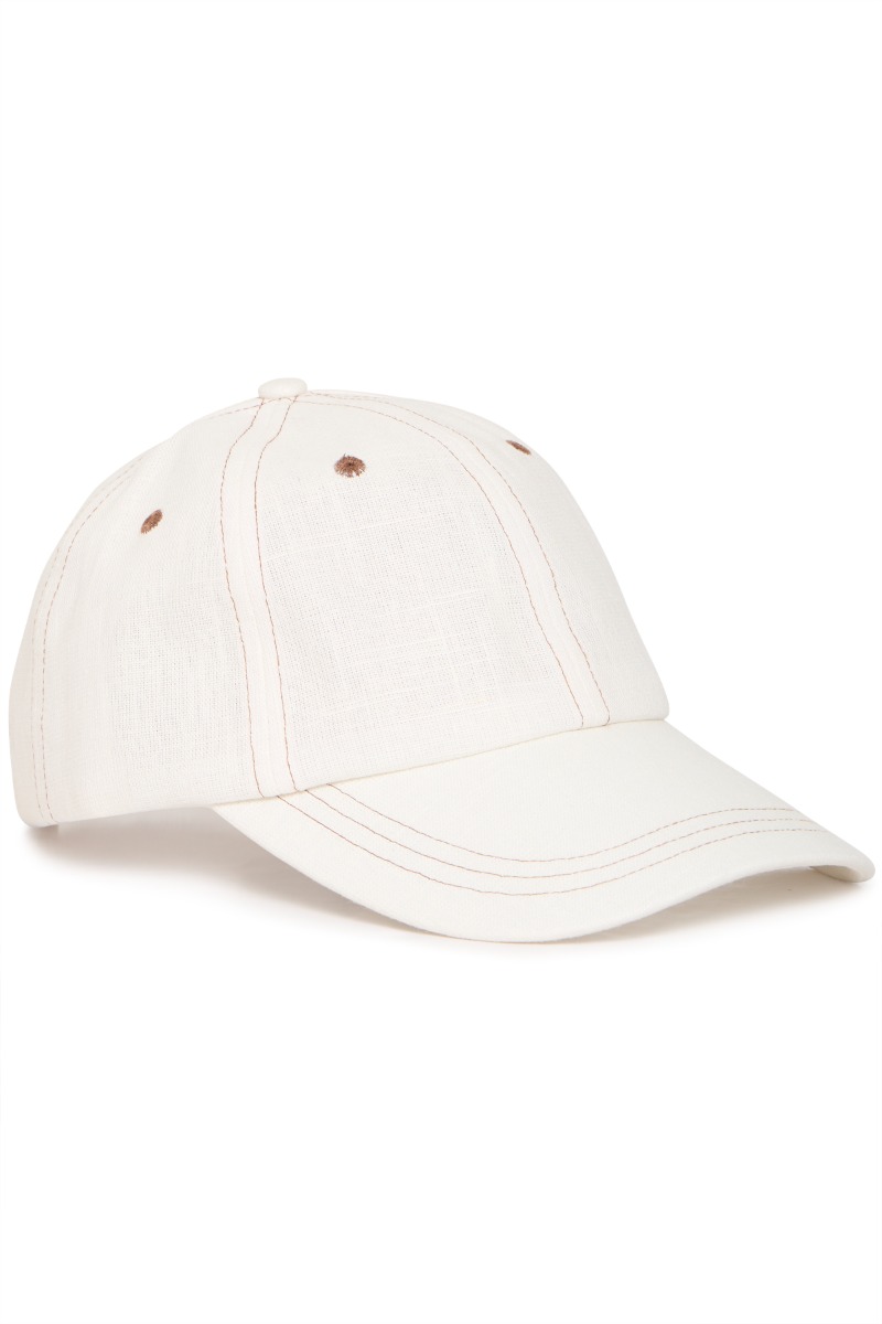 En fin hvid kasket fra Ichi med justerbar rem bagpå. Den er med i en hør kvalitet og perfekt til et casual street outfit.