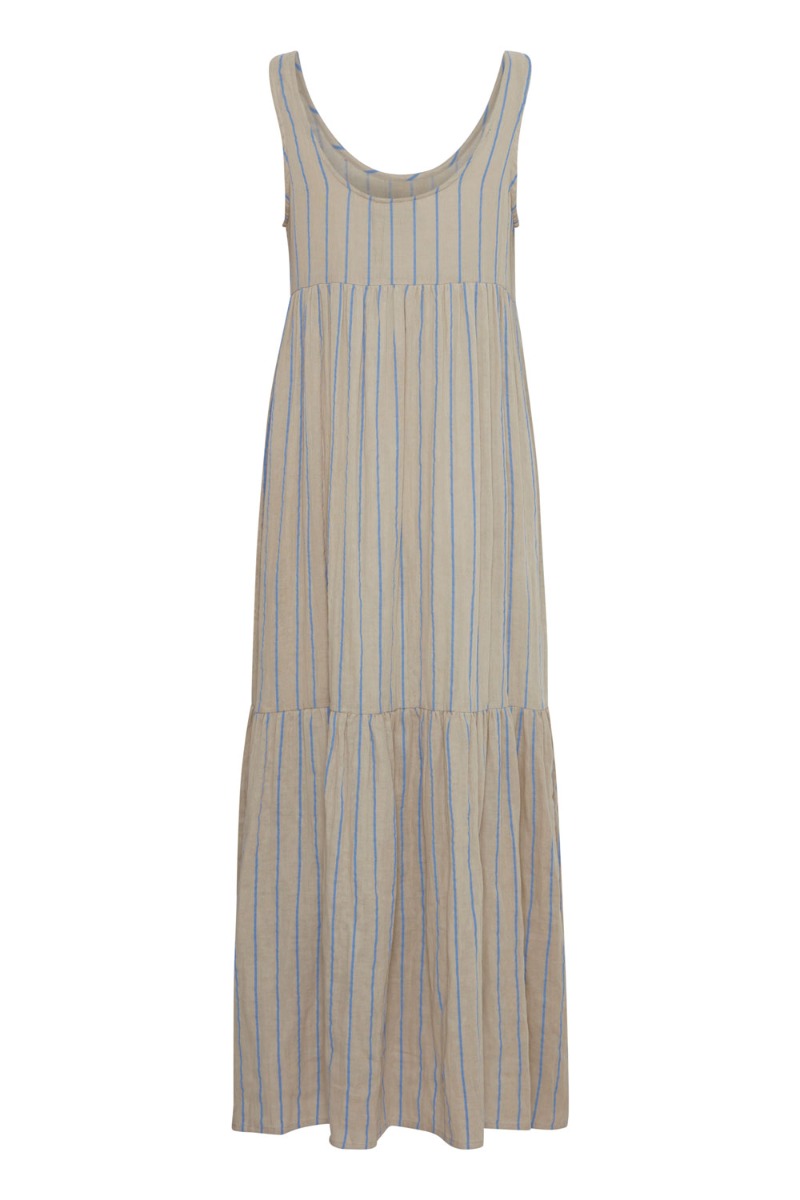 Ichi - Kjole - IA Foxa Striped Maxi Dress - Doeskin/Della Blue stripe