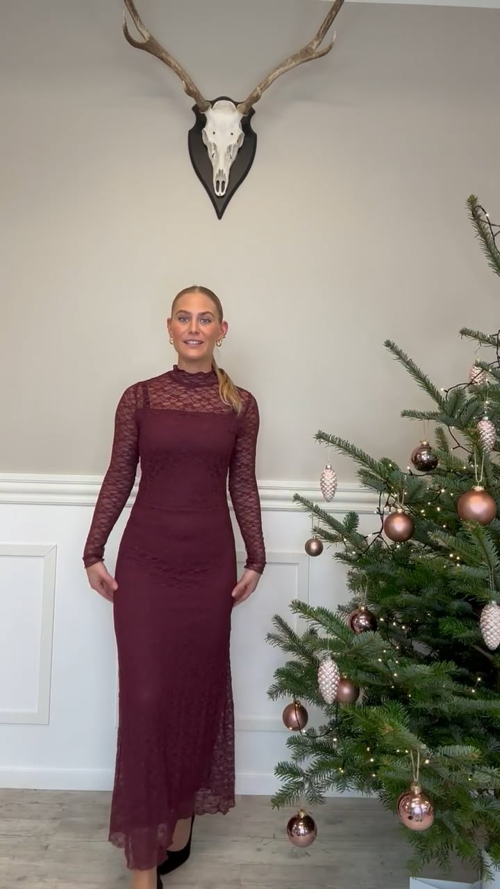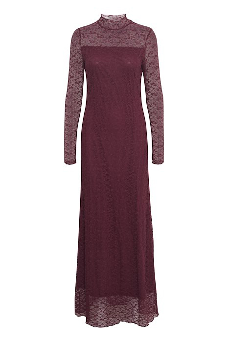 En virkelig smuk og elegant kjole fra Ichi i den flotteste røde blonde! Denne kjole er lang, og blonden er gennemsigtig, men underkjolen gør at den selvølgelig ikke er gennemsigtig andre steder end på armene og i bunden. Denne kjole er super fin til diverse julefrokoster eller andre festligheder!