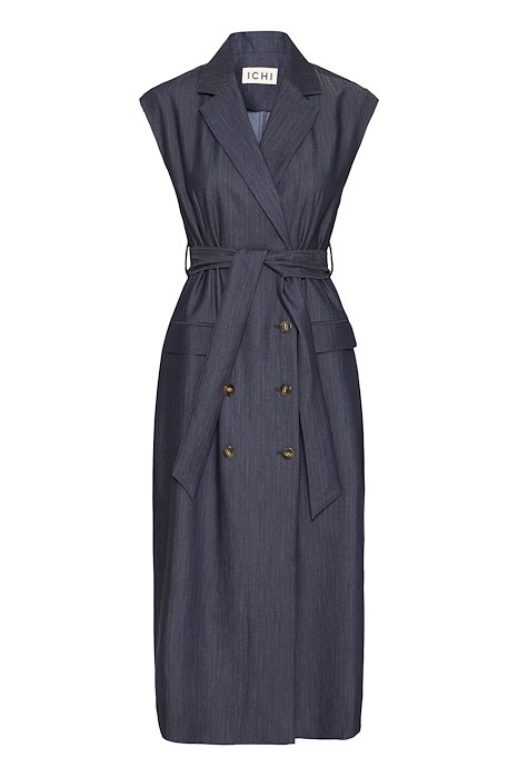 En super smart kjole er landet fra Ichi! Denne kjole er den perfekte hverdagskjole, da den har et super smart og professionelt look over sig! Den er lavet i en ærmeløs blazer-stil og med et bindebånd i livet, så du kan justere den efter ønske, og opnå en flot feminin silhuet!