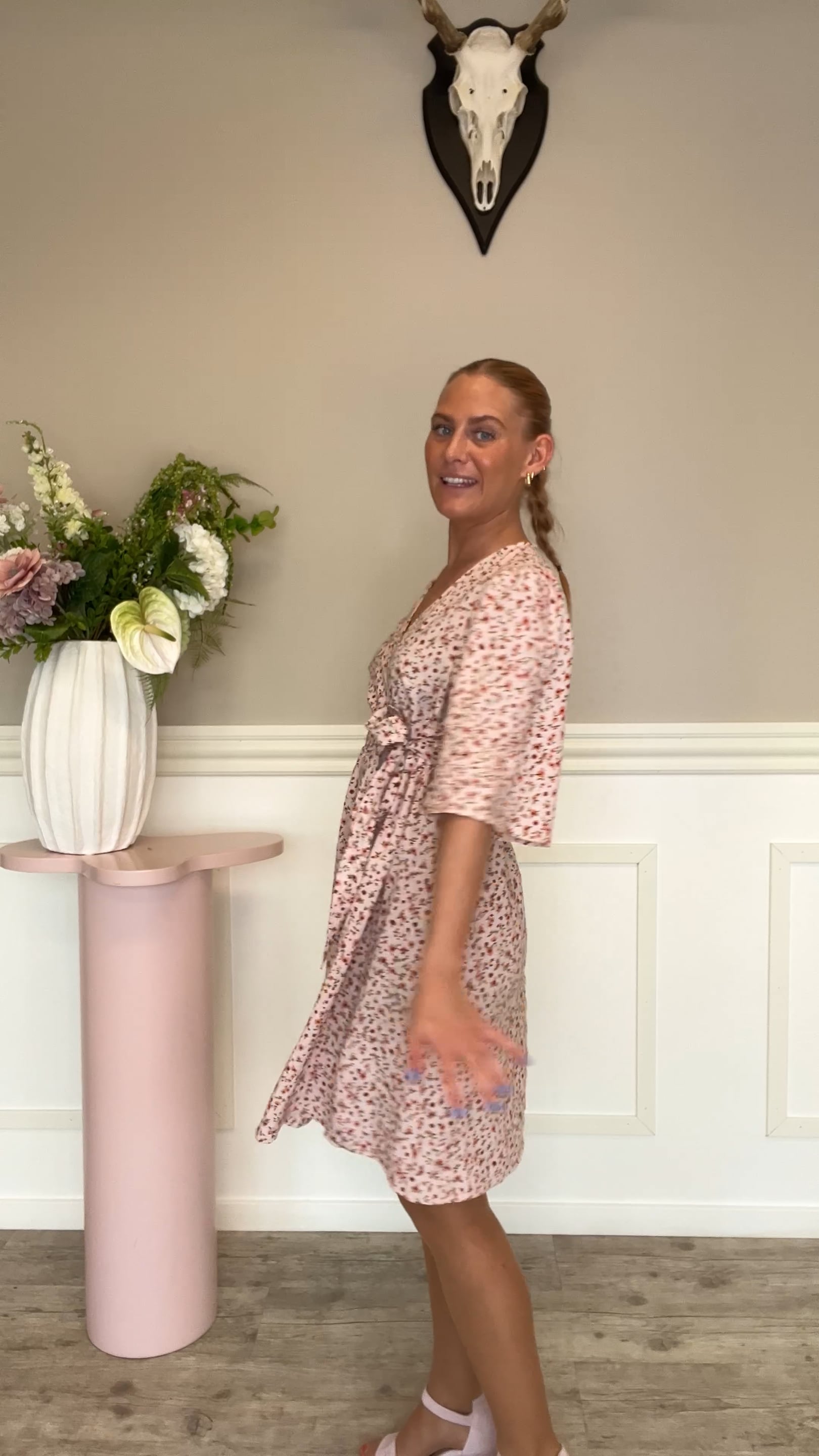 En super fin og sommerlig kjole er landet her fra Ichi. Denne kjole er i den fineste lyserøde farve med flotte blomster. Den er lavet i en slå-om model, men er egentlig lukket, så der er altså ingen fare for at den går op! Brug den til hverdag og fest!
