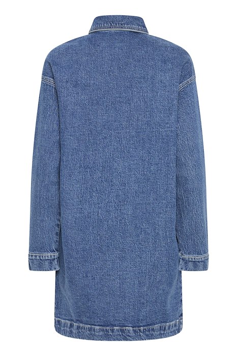 Sej kjole fra Ichi. Denne kjole har et cool snit, som falder pænt langs kroppen. Den har lange ærmer, krave og knaplukning. En kjole der er super nem at style til diverse anledninger, samt hverdag.