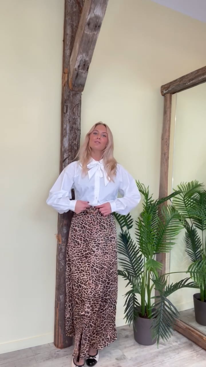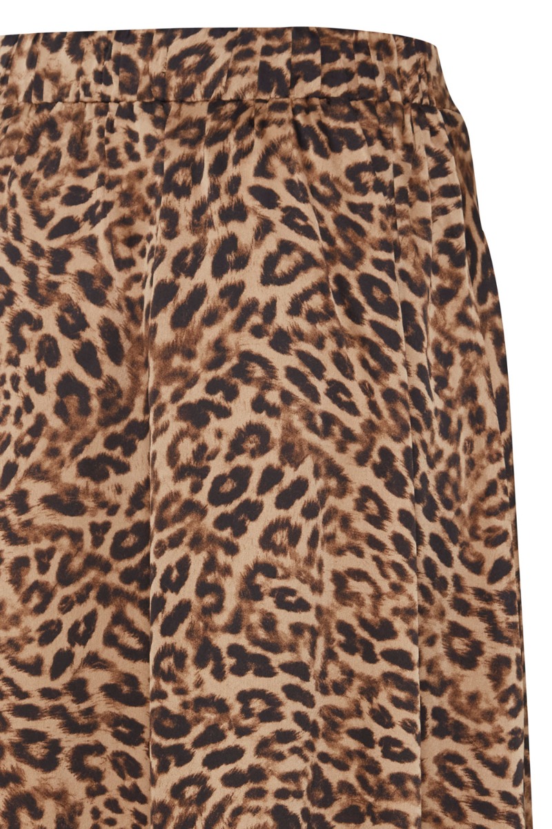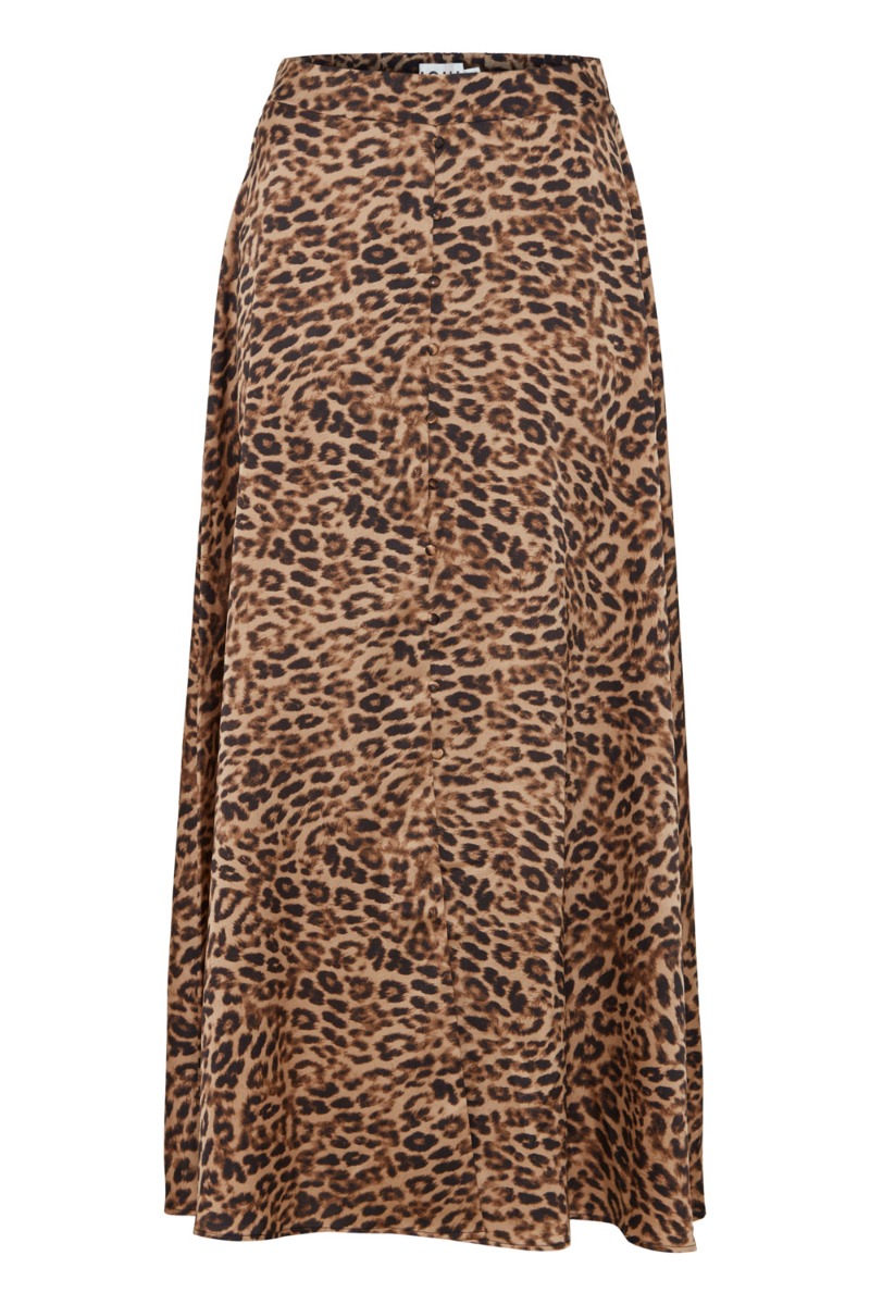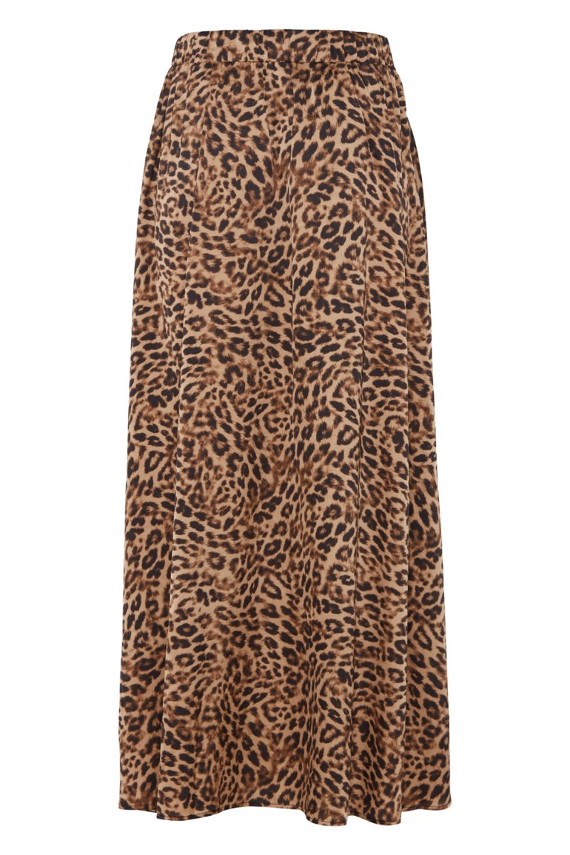 Den sejeste nederdel fra Ichi! Nederdelen er i leopardprint samt i en let satin lignende kvalitet. Den falder løst og har knapper hele vejen ned som ender ud i en slids. Derudover har den elastik i taljen bagtil, som gør den dejlig behagelig at have på.