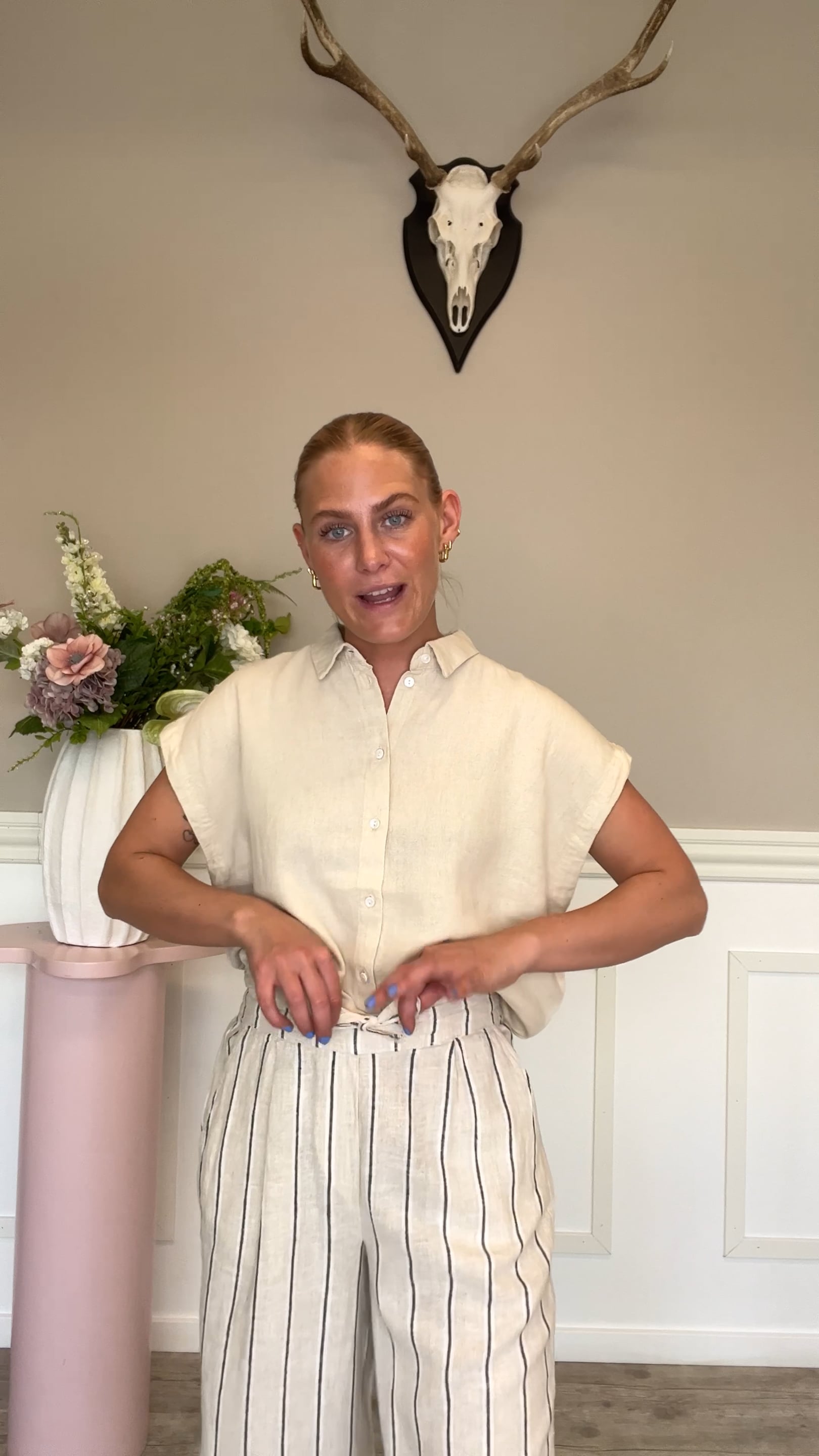 Ichi - Shorts - IH Linno SHO2 - Natural Ecru Stripe