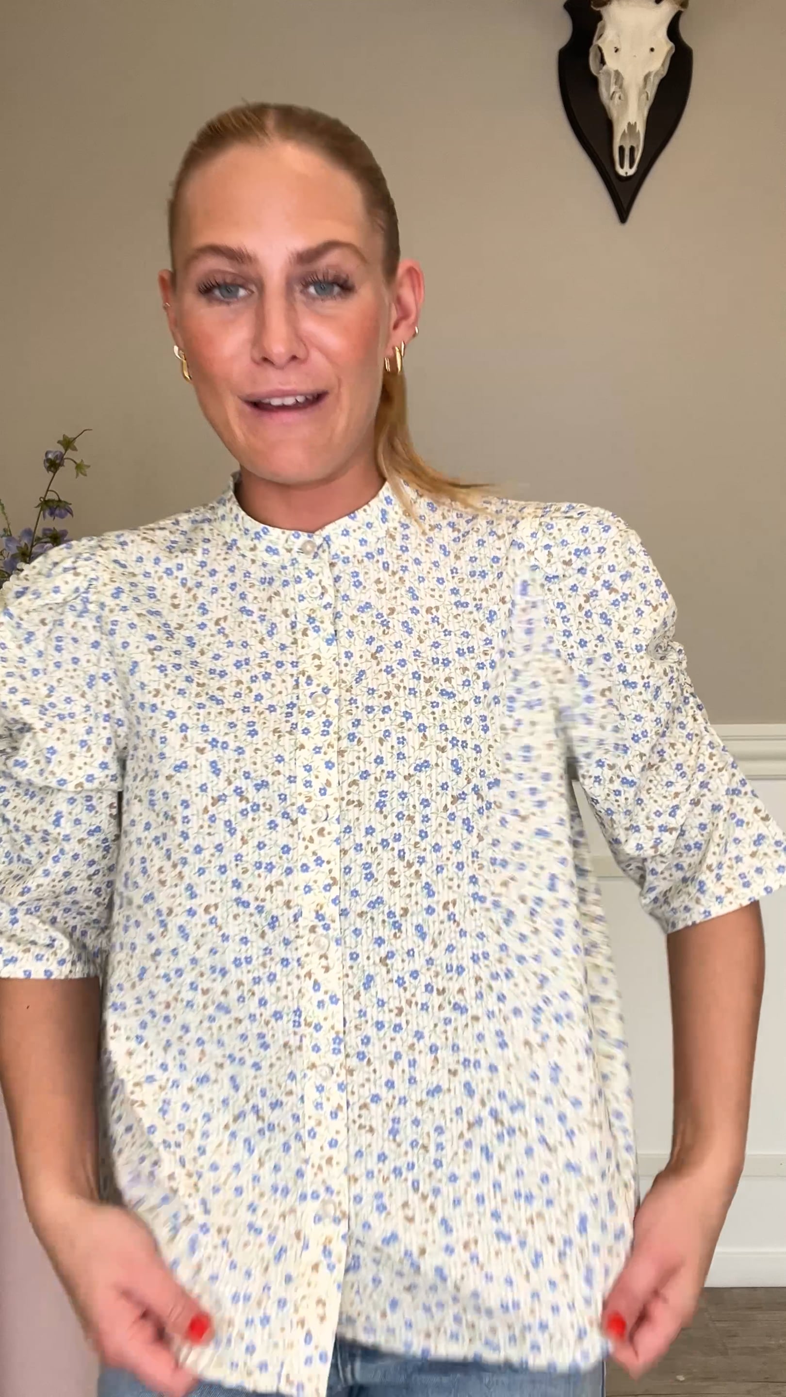 En sød skjorte fra Ichi i et fint forårsprint. Denne skjorte har 3/4 ærmer med rynkedetaljer på siden, hvilket gør dem lidt mere puffede og giver et fedt look. Skjorten er super fin til en nederdel eller et par jeans.
