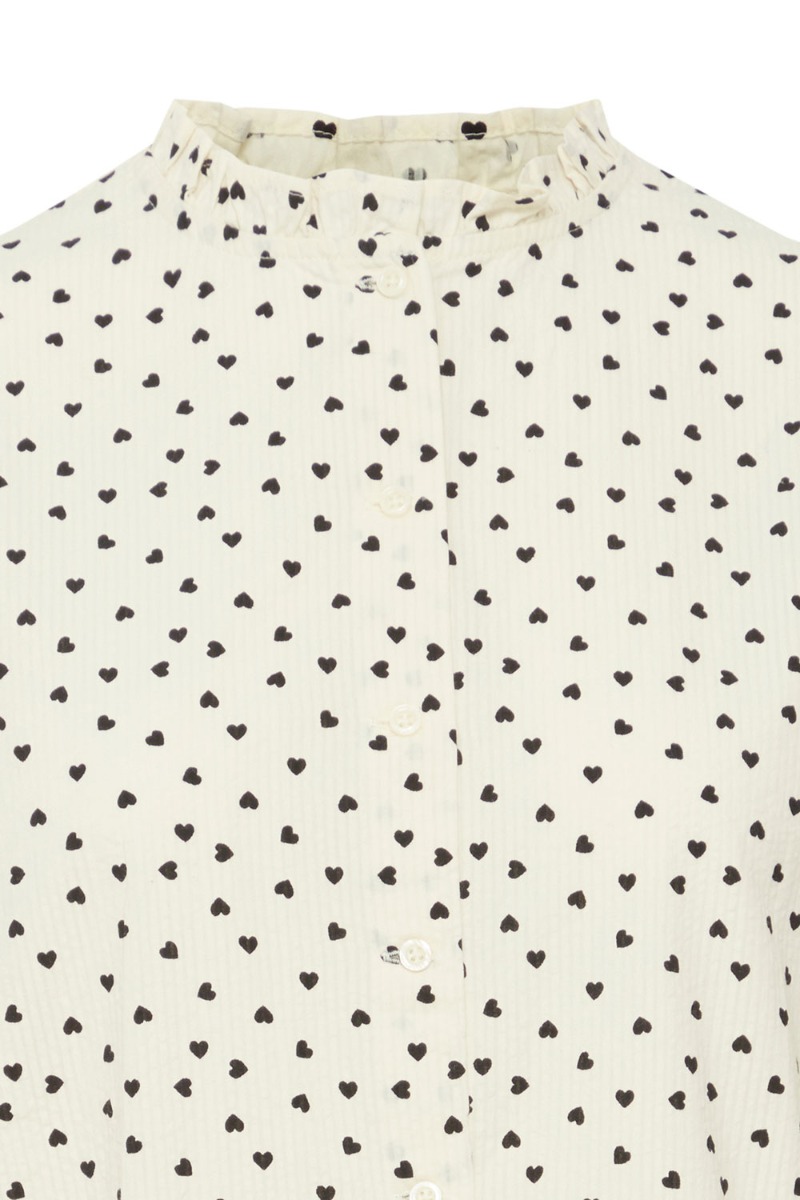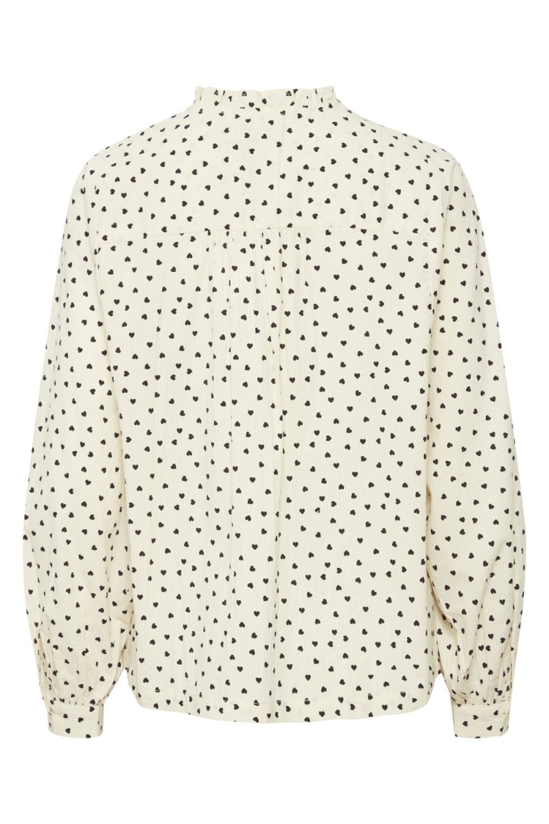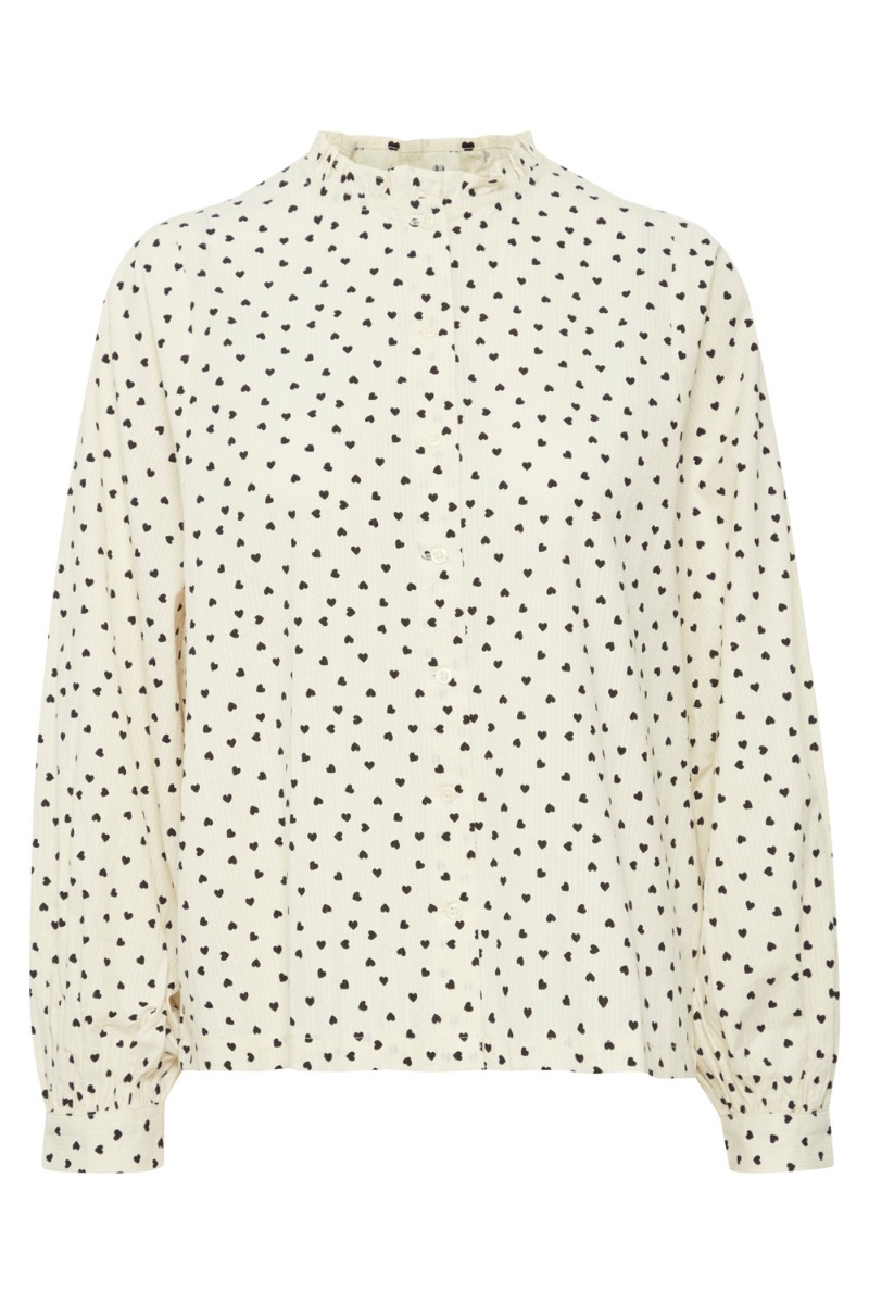 En sød prikket skjorte fra Ichi i hvid med sorte prikker. Skjorten har en løs klassisk pasform med knapper hele vejen ned foran og et lille puff ved skulderen. Style den til et par jeans eller en pæn nederdel alt efter om det er fest eller hverdag.