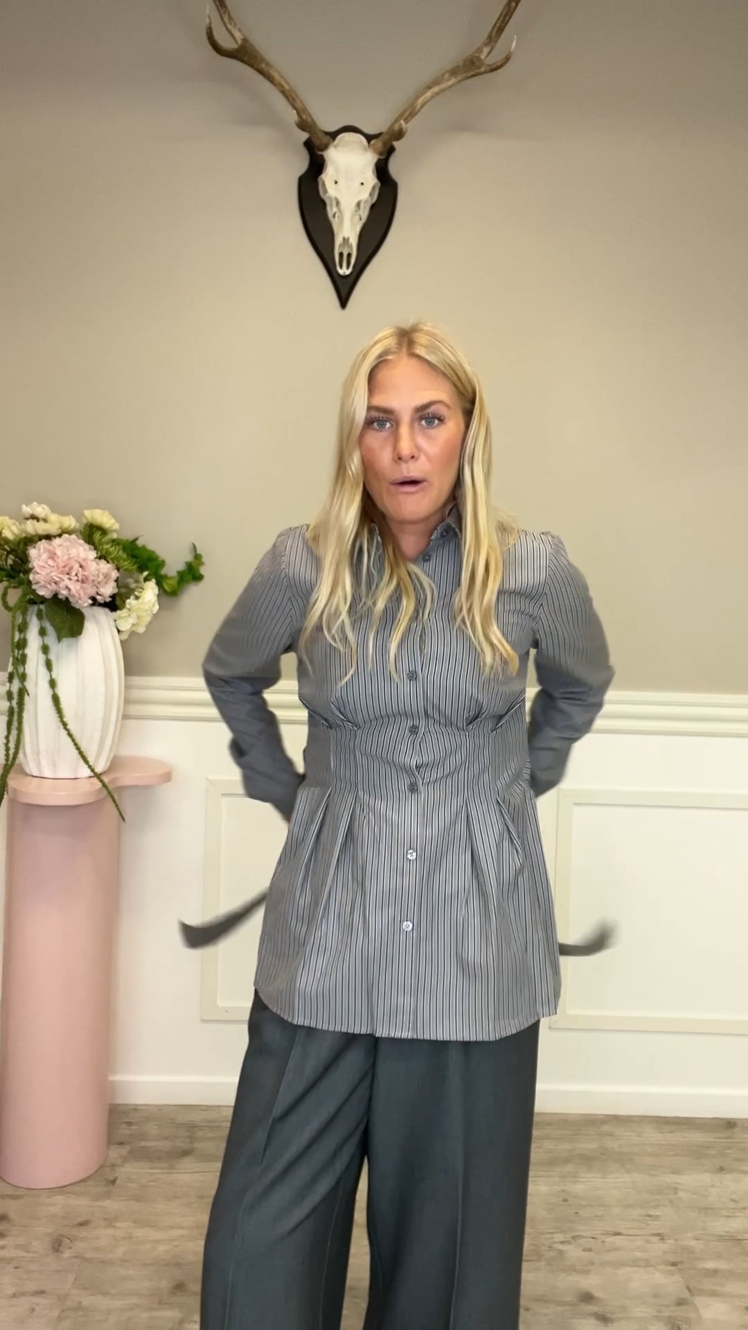 Ichi - Skjorte - Janika - Dark Grey Stripe