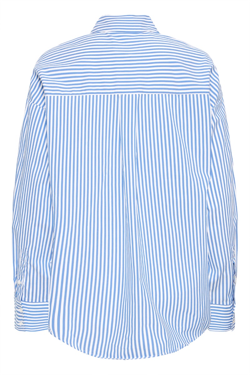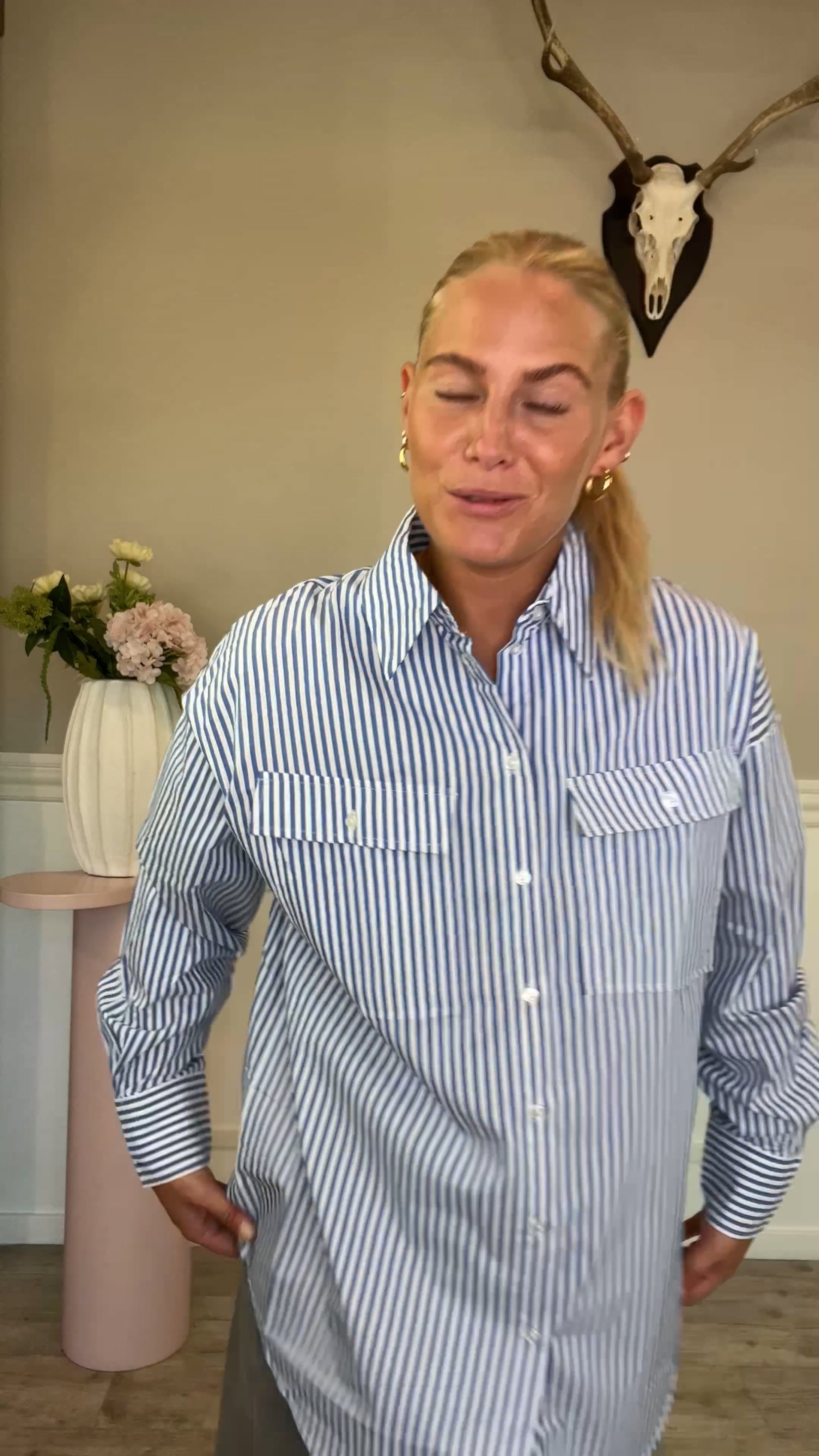 Her kommer altså et msuthave til garderoben - nemlig en skjorte med striber i hvid og blå. Sådan en går man aldrig galt i byen og denne løse pasform og alle de klassiske detaljer som en skjorte til have, gør den bare endnu nemmere at style den.