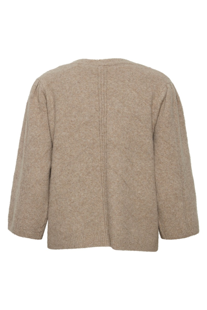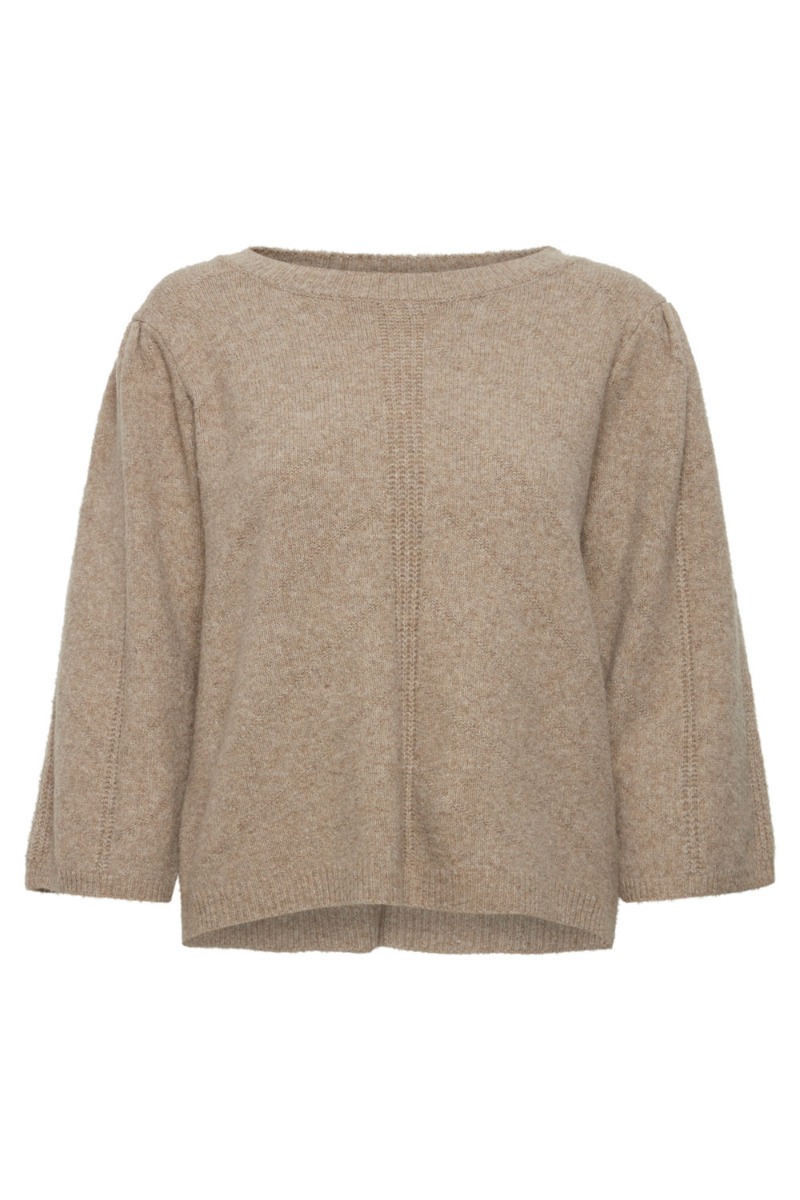 En dejlig blød strik fra Ichi er landet til dette forår. Den er i en nem beige farve, som kan styles til stortset alt. Derudover er den løs i pasformen og har brede ærmer der er 2/4 lange. Den har en smal ribkant i bunden, som ikke strammer til og derfor giver et casual udtryk. Den er nem at rbuge til hverdag og den findes også i hvid.