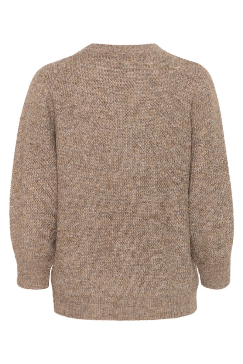 Den lækreste strik i den fineste brunlige nuance fra Ichi. Strikken er løs i pasformen, men helt normal i størrelsen. Den er med rund hals og har et fint strikket mønster foran. Den findes i mange skønne farver, kan bruges året rundt og er nem at sætte til et par jeans eller et skirt.