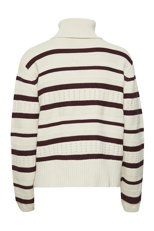 En virkelig fin strik fra Ichi er landet i en dejlig strikkvalitet. Den er lavet i en flot mønstret strik, med rullekrave og rib i bunden samt ved ærmerne. Denne strik er den perfekte efterårsstrik!