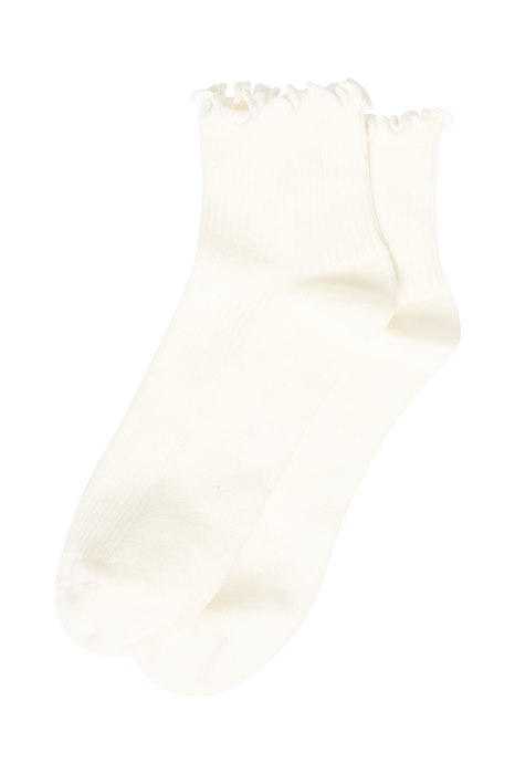 Et par virkelig søde strømper fra Ichi i en klassisk hvid farve. Disse strømper har en supersød bølgekant, hviket bare gør dem så femiine! Style dem i et par loafers!