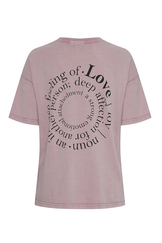 En super sej t-shirt fra Ichi, i en lyserød farvenuance. T-shirten har ribkant ved halsen og tekst på ryggen, som giver t-shirten det fedeste udtryk.