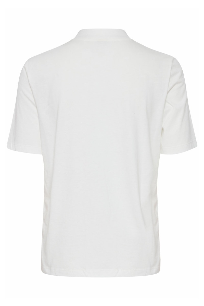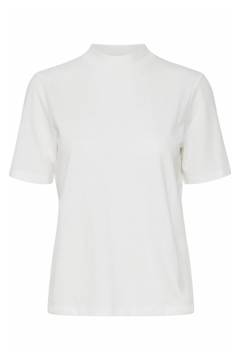 Hvid enkel t-shirt fra Ichi med korte ærmer og en lille t-neck. T-shirten har et klassisk snit og er super nem at style til hverdagslooket. Altid god at have i garderoben.