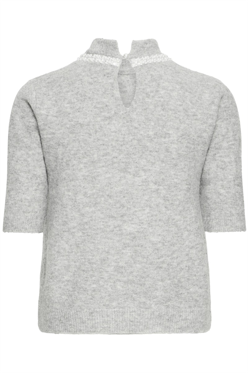 En sød T-shirt fra Ichi med en kant af perle i et strikket materiale. Den kan styles med et par jeans eller en nederdel.