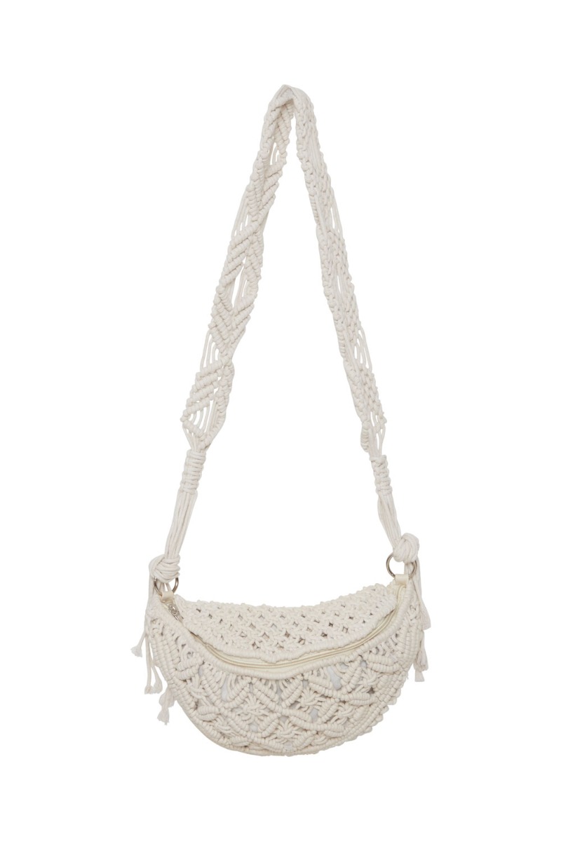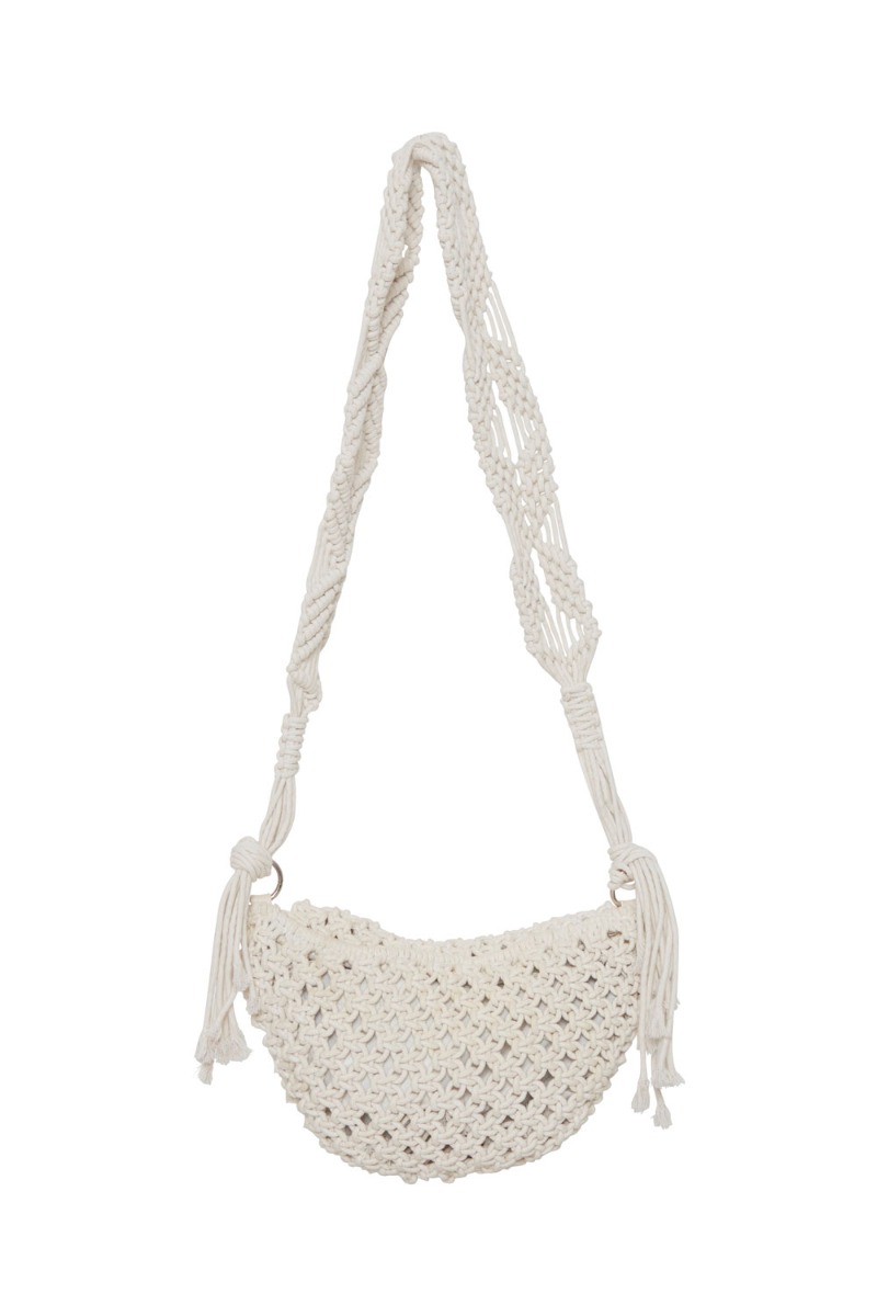 Sød knyttet taske fra Ichi i hvid med rem. Tasken har en fin størrelse til de vigtigste ting vi piger skal have med os. Den har lynlås i toppen samt et lille indvendigt åben rum. Tasken er super fin til de mange sommerlooks.
