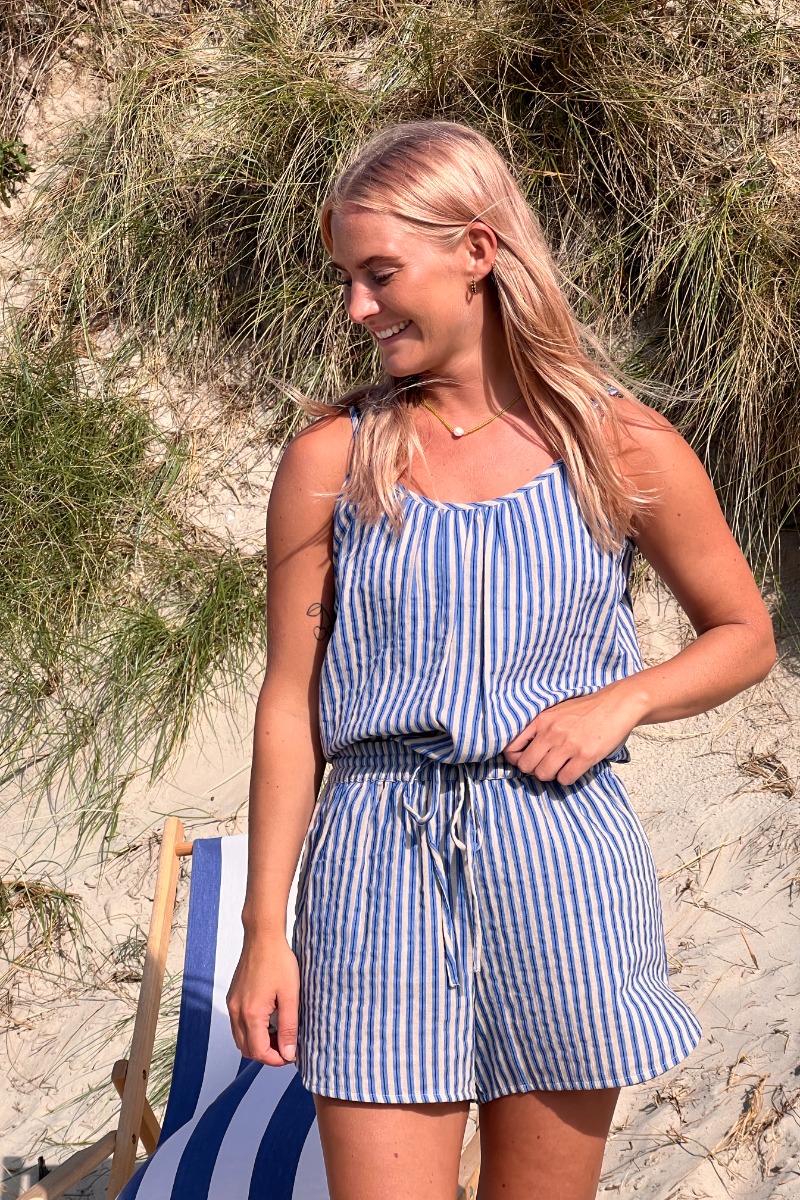 En fin top fra Ichi. Denne top har tynde stropper og en løs, behagelig pasform. Toppen har et stribet mønster og er en del af et sæt, så der findes matchende bukser og shorts til. Brug det som et let forårs/sommersæt eller med en nederdel og sandaler til.