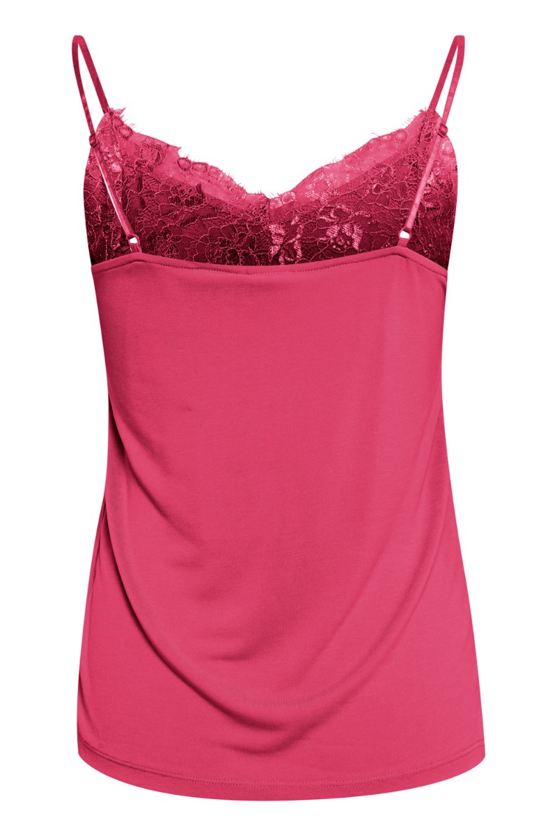 Fin enkel top med blondekant i toppen og tynde justerbare stropper. Toppen er i en dejlig blød kvalitet og er bare altid genial at have i garderoben både til styling under en blazer eller til en fin nederdel.