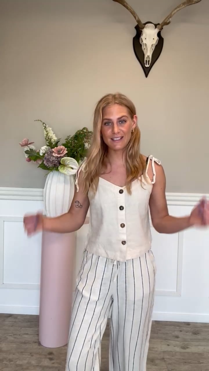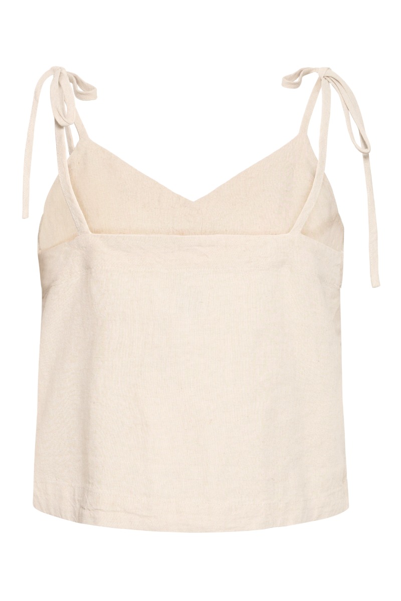 En virkelig sød og sommerlig top er landet fra Ichi til denne sæson. Denne top har stropper, som bindes, knapper og en let og luftig hørkvalitet. Den er så fin til de matchende shorts fra samme mærke, hvis du ønsker et fuldendt look, men kan selvfølgelig også bruges til en anden underdel efter ønske!
