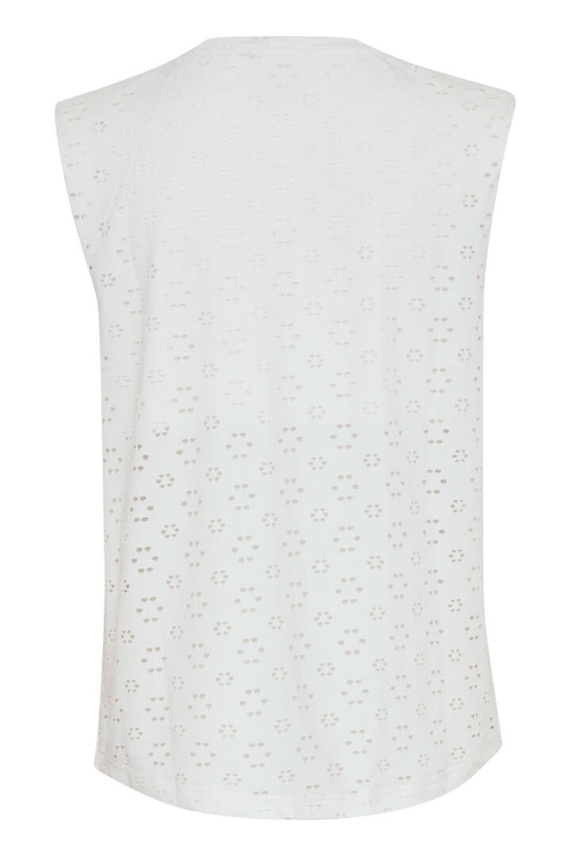 Den fineste hvide top fra Ichi med et hullede print af blomster. Toppen er løs i pasformen og har et ekstra lag, så den ikke bliver gennemsigtig.