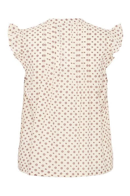 Sød top fra Ichi. Denne top har et fint og sommerligt design. Toppen har print af små blomster, flæser ved skuldrer og en rund halsudskæring. Den er nem og fin at bruge til hverdag med et par shorts eller enkel nederdel. Findes også i kjole!