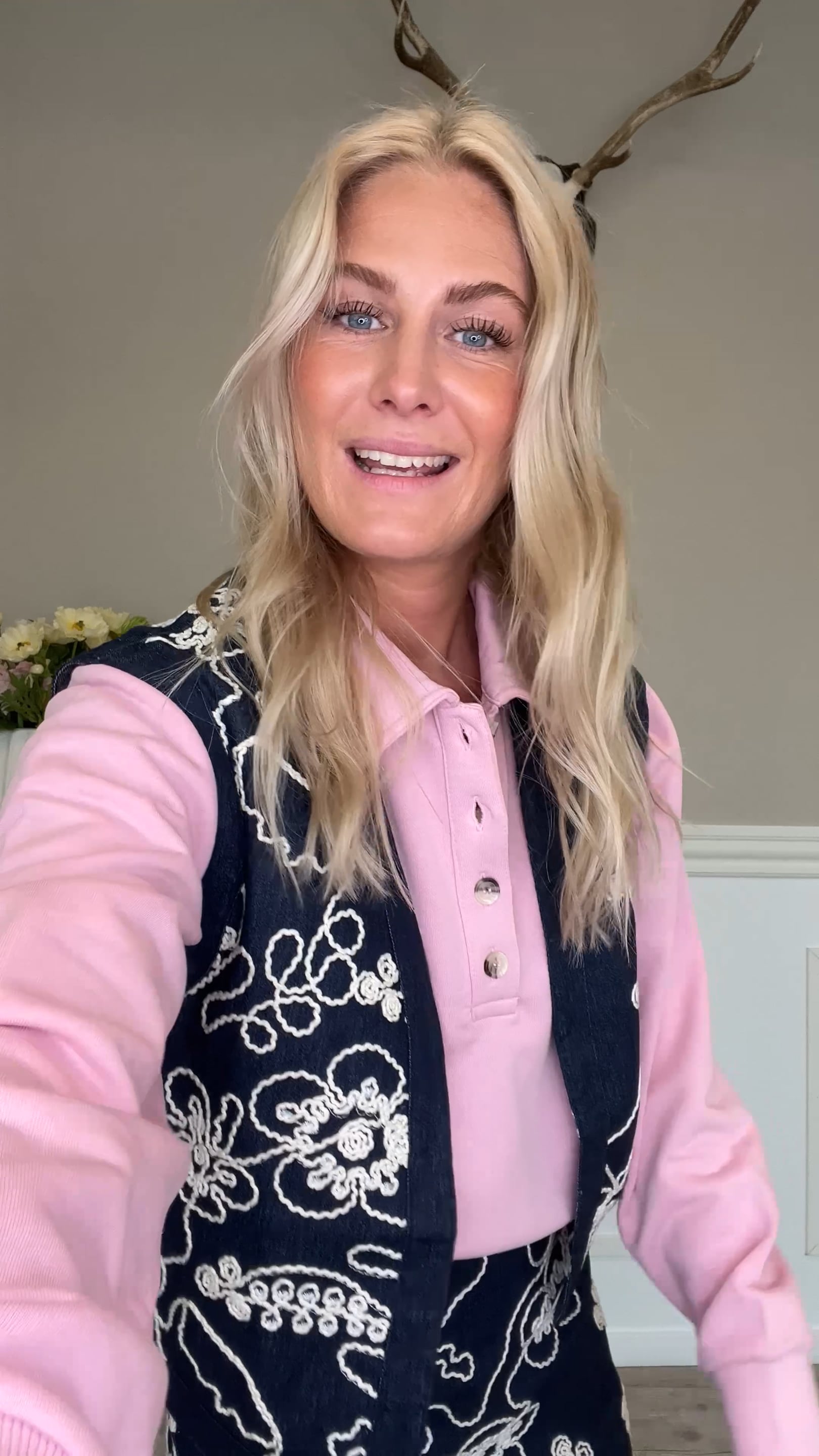 En virkelig fin vest er landet fra Ichi til denne sæson. Denne vest er i en flot mørkeblå med cremefarvede blomsterformationer. Vesten her er super smart til den matchende nederdel, men kan bestemt også bruges til et par jeans eller bukser. Style den gerne med en flot skjorte under!