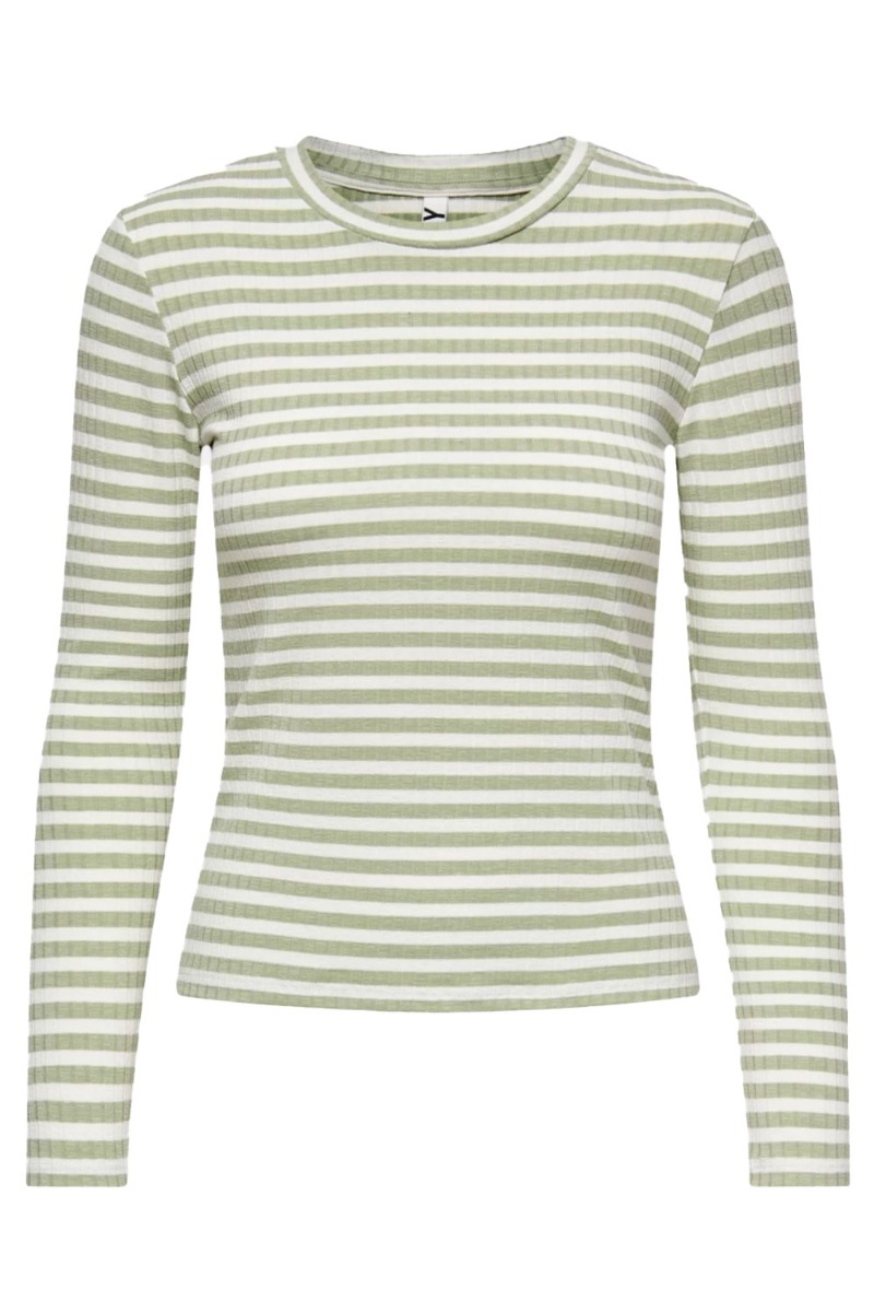 JDY - Bluse - Fransiska L/S Stripe O-Neck Top - Basil