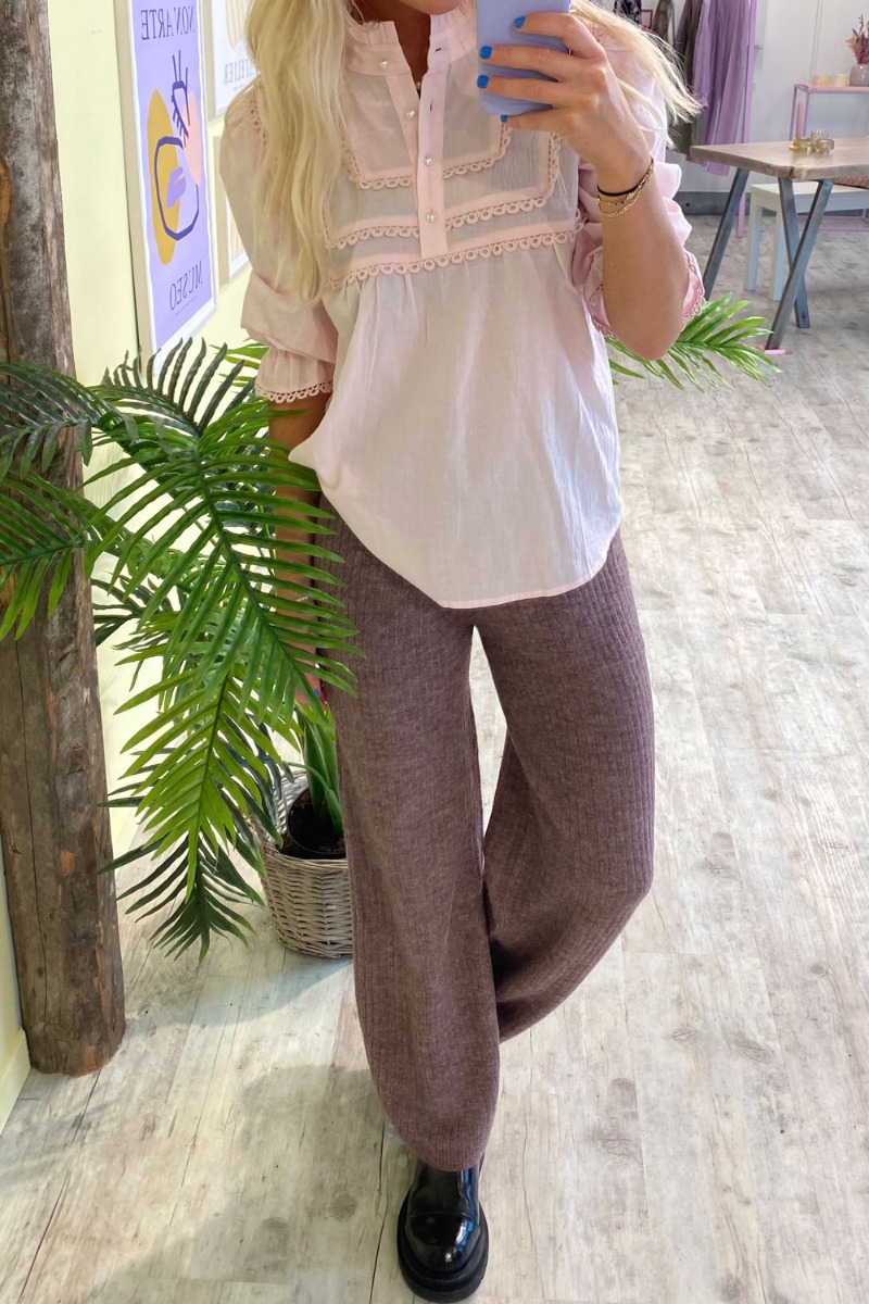 De dejligste bukser fra JDY i støvet bordeaux. Bukserne er lavet i en blød kvalitet med masser af stræk og vidde i benene. Bukserne er højtaljet med elastikkant og perfekte at style med en oversize skjorte eller til søndagshygge med en strik.