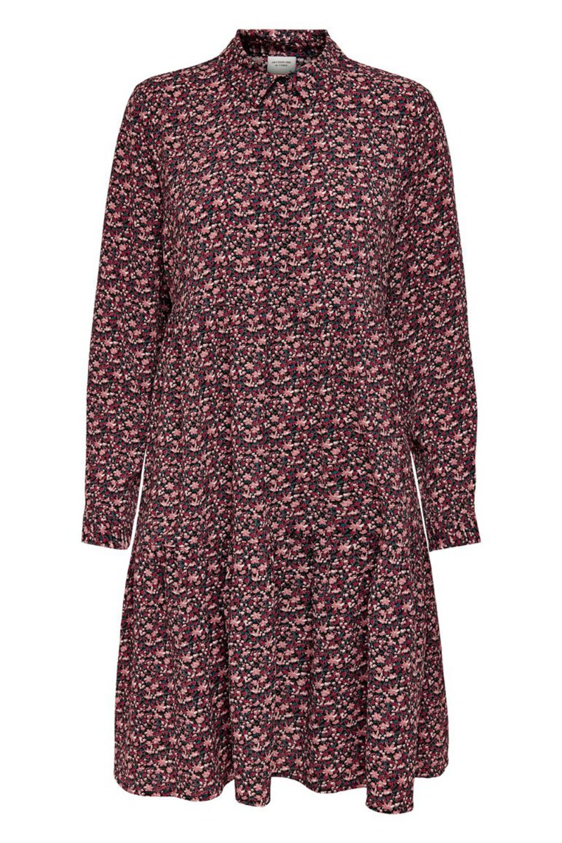 Smuk rosa blomstret kjole fra JDY i et taknemmeligt snit med peplum og knapper øverst. De lange ærmer lukkes med en enkelt knap ved håndleddet og er super fin at style med sorte nylonstrømper og en støvle.
