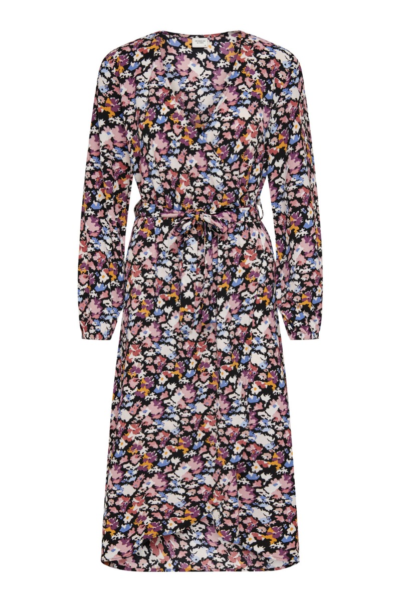 JDY - Kjole - Roxanne LS Wrap Dress - Black/Pastel ABS