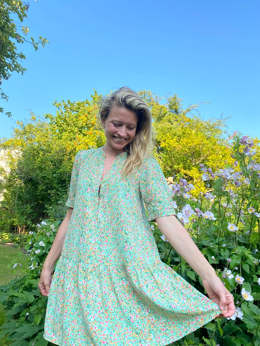 Grøn SMUK kjole med blomsterprint.