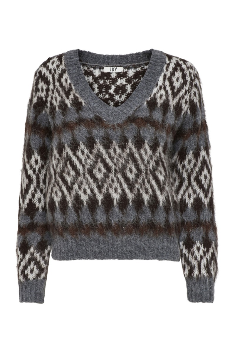 JDY - Strik - Nille Life LS Jacquard Pullover Knt - Grey