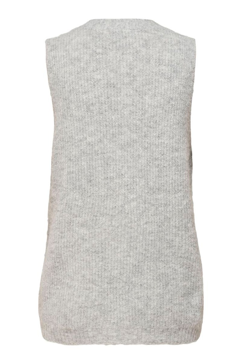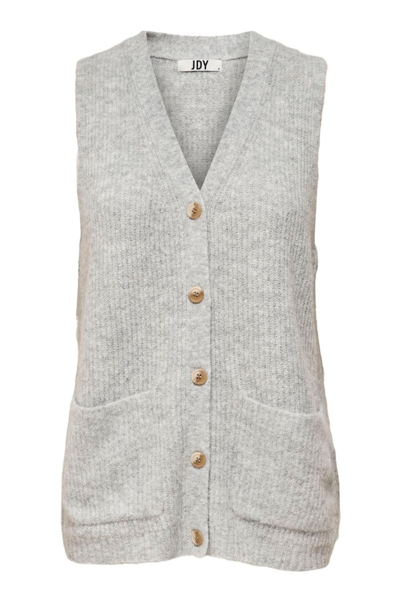 Skøn strikket vest med knapper fra Jacqueline de Young. Vesten er i det blødeste grå strik med naturknapper.