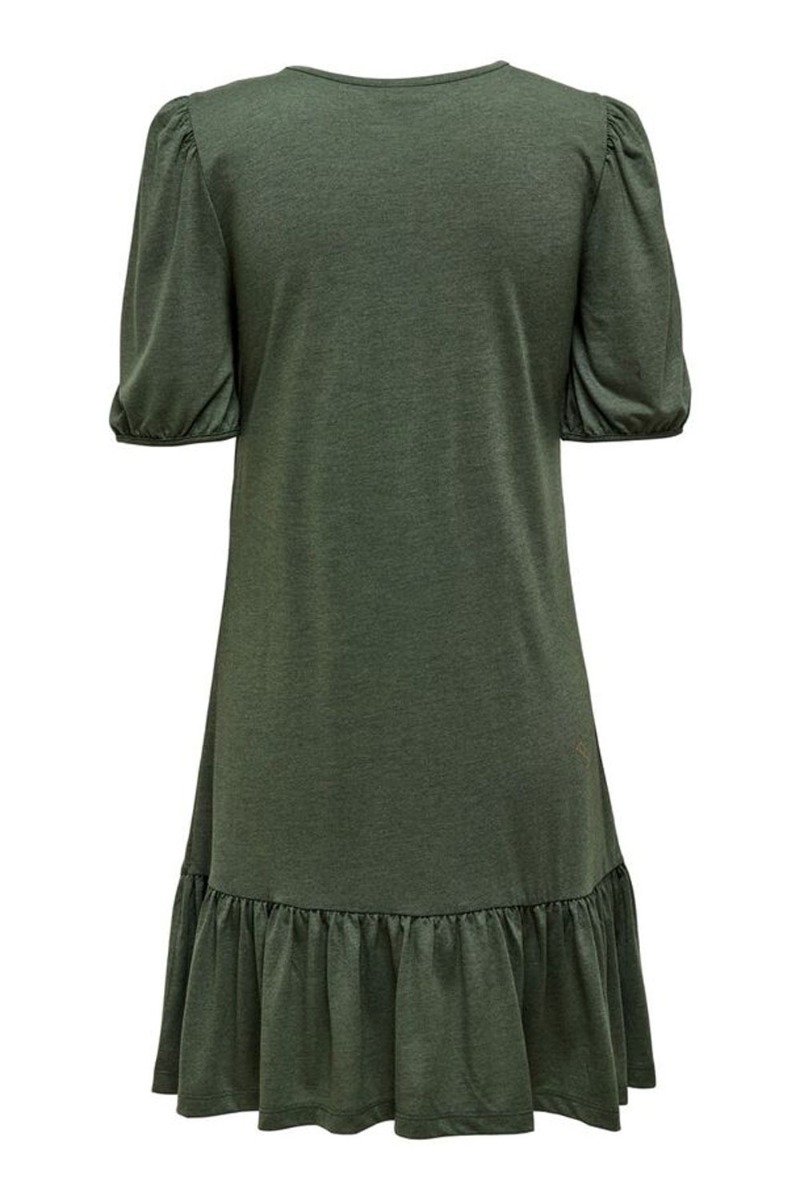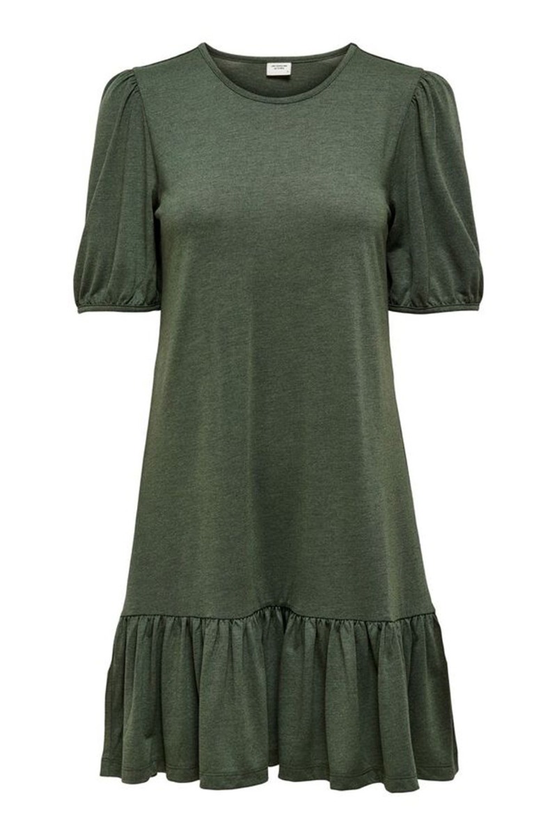 Army kjole fra JDY i et helt enkelt look med peplum forneden og rund halsudskæring. Kjolen er designet i et utrolig blødt materiale med masser af stræk og et fint lille t-shirtærme med rynkedetalje ved skulderen. Style den til en sandal eller sneaks.