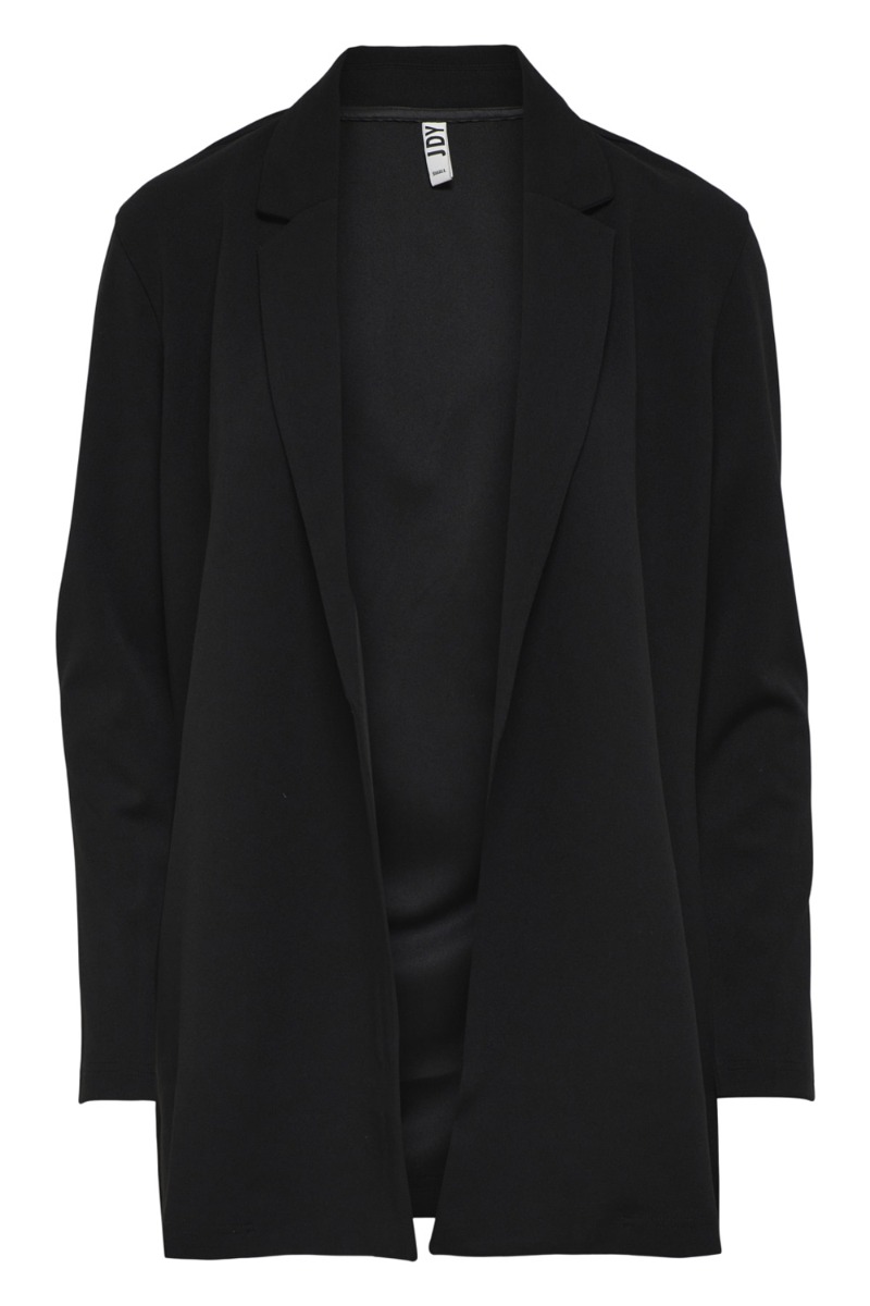 Sort klassisk enkel blazer fra JDY. Blazeren er lavet i en unik kvalitet nemlig med masser af stretch der gør den så skøn at have på. Blazeren har et feminint snit der er åben foran uden lukning og med lange ærmer.