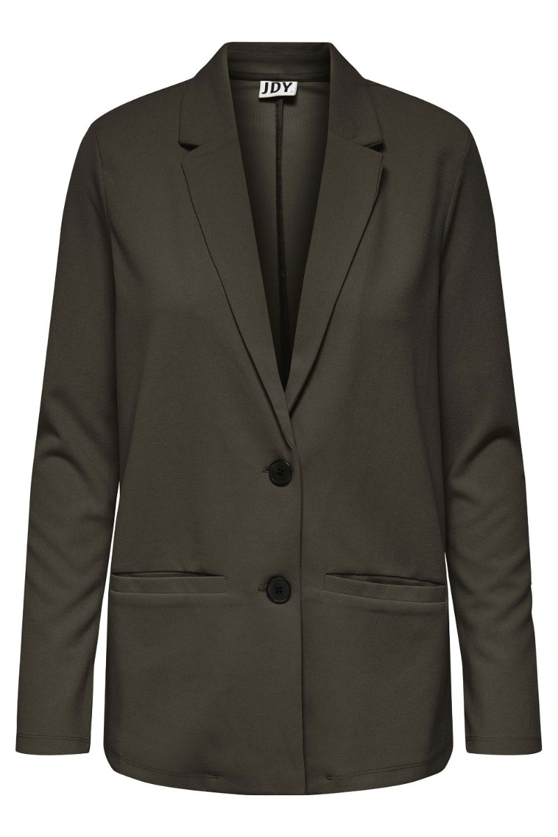 Endnu en Louisville blazer er kommet fra JDY - og nu en smuk mørkegrøn farve. Blazeren er klassisk i sit snit, men så i en helt tynd strækbar kvalitet. Den lukkes foran med to knapper og har to snydelommer foran. Der findes et par matchende bukser til og hele sættet findes i flere farver.