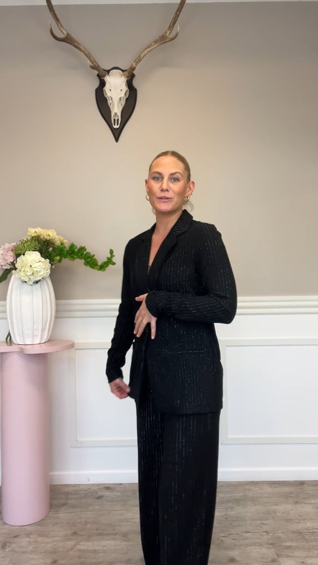 En super fin blazer er landet her fra JDY. Denne blazer er egentlig helt klassisk i pasformen og dens sorte farve, men den har samtidig et lille twist med metalliske fibre i stoffet, som giver den den flotteste glimmer-effekt. Style den evt. til de matchende busker eller nederdel for et fedt sæt eller til en anden underdel fra skabet!