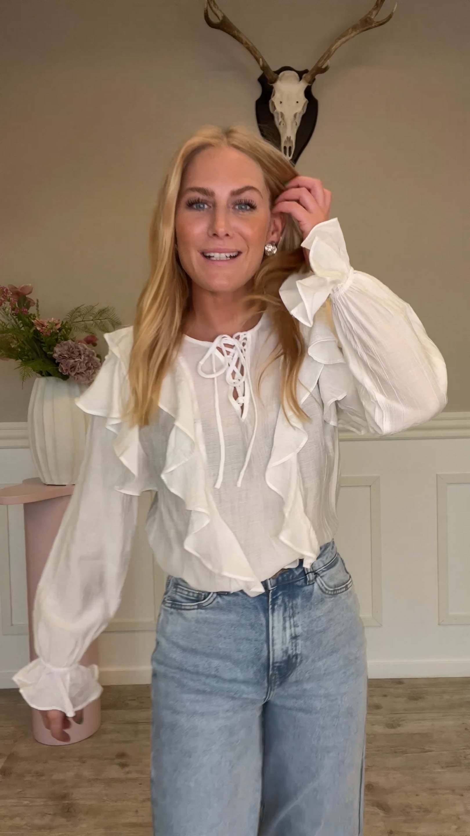 En virkelig fin bluse er landet fra JDY i en klassisk hvid farve, som er super nem at style til alt! Denne bluse har flotte, fyldige flæser og et bindebånd i halsudskæringen, hvilket bare er endnu en fin detalje til denne skjorte. Style den til et par jeans eller en nederdel!