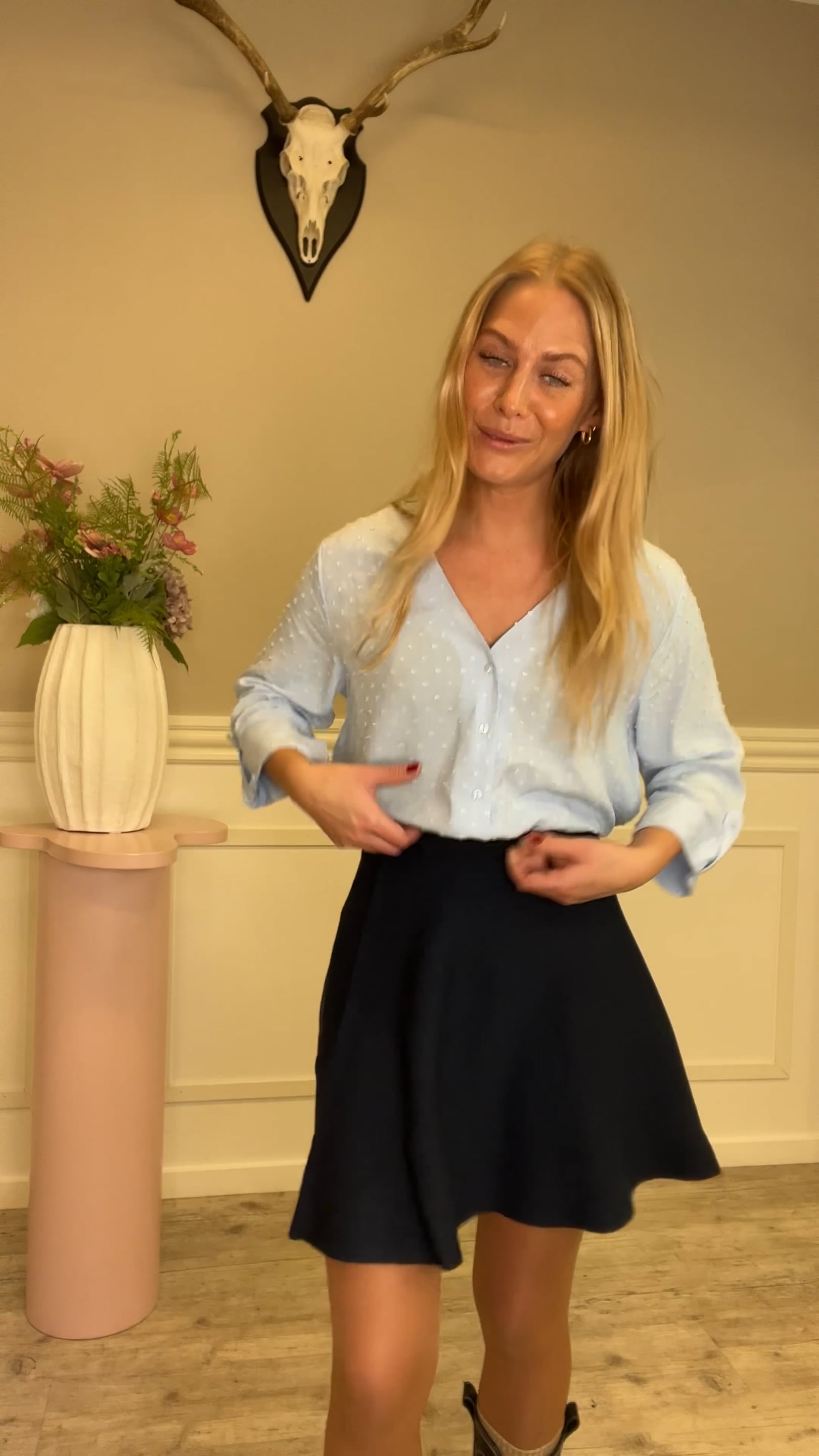 Sød bluse fra JDY. Denne bluse har opsmøget kant på ærmerne, en løs pasform og v-udskæring. Blusen lukkes fortil med knapper og har et stilrent design. Brug til hverdag med et par jeans eller smid en blazer over og gør den mere formelt.