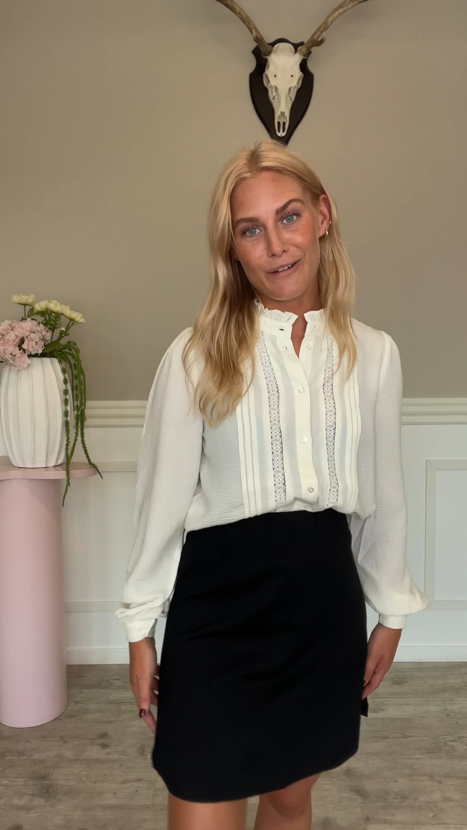 Bluse fra JDY. Denne bluse har det fineste design, med blondedetaljer foran samt på ærmerne og flæser på kraven. Den har en let kvalitet og falder super pænt, i dens løse pasform. Du kan styles den til næsten alle underdele og anledninger!