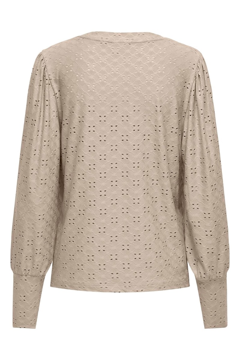 Den fineste bluse fra JDY i et hullede broderingsmønster. Blusen har ballonærmer som slutter med et fast stykke ved ærmerne, hvilket giver dem et feminint look. Blusen findes i flere forskellige farver og er perfekt under dine blazere her til efteråret.