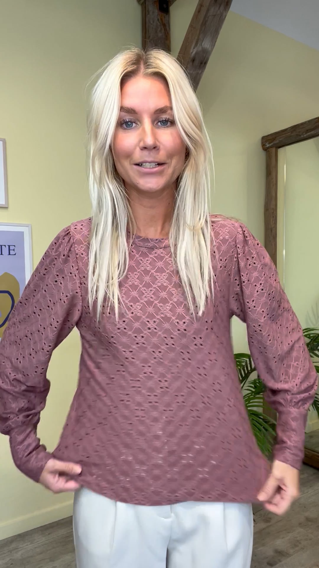 Den fineste bluse fra JDY i en flot rosa nuance. Blusen har et fint hullede broderingsmønster som giver den det flotteste feminine look. Style den fine bluse til et par af vores populære Cindysusbukser fra Bruuns Bazaar, for et flot hverdagslook.