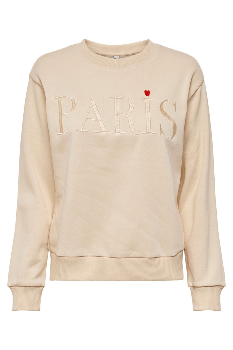 Cool sweat fra JDY i beige med teksten "Paris" foran og et sødt lille rødt hjerte. Sweaten har et klassisk snit så den ikke er for oversize - ønsker du dog et mere oversize look kan du nemt gå en til to str. op. Style med jeans eller en nederdel til hverdagen.