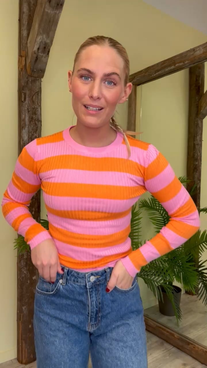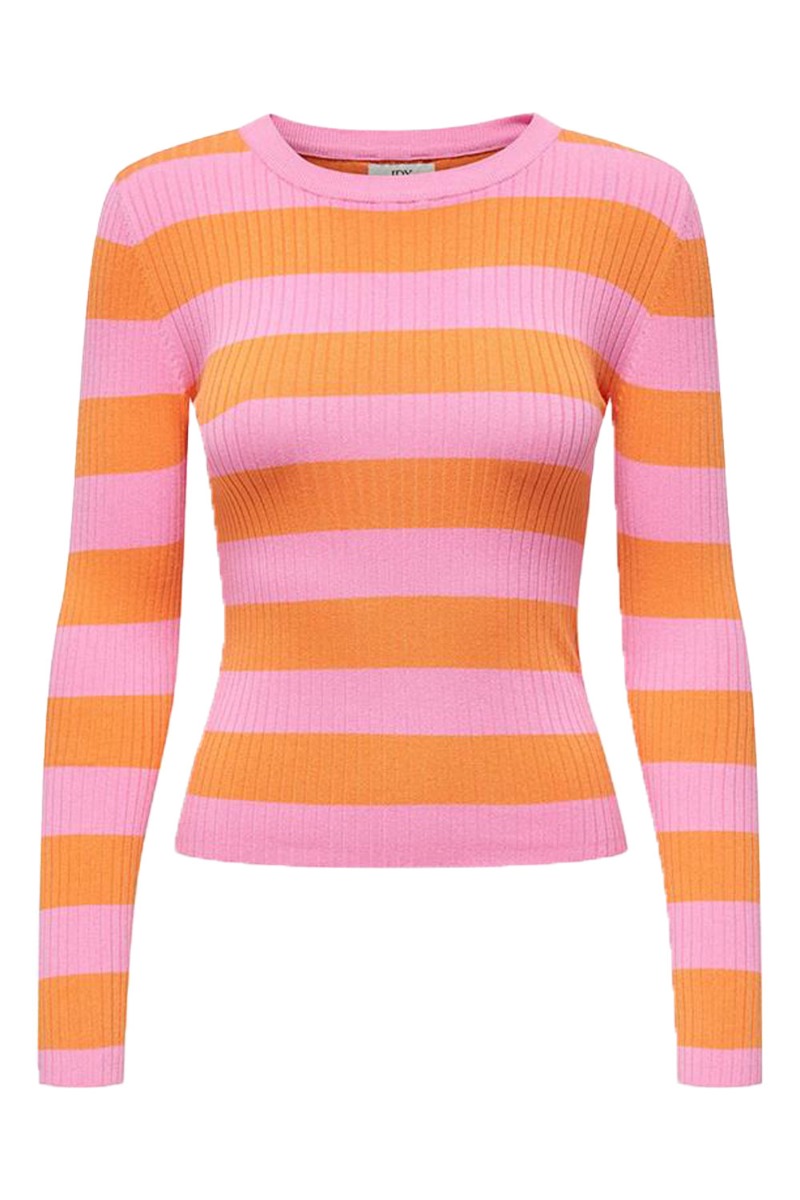 JDY - Bluse - JDY Plum L/S O-Neck Stripe Pullover - Begonia Pink
