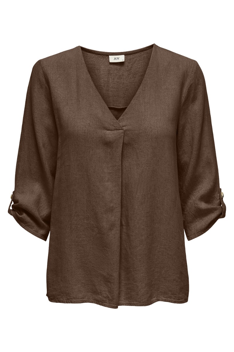JDY - Bluse - JDY Say 3/4 Linen V-Neck Top Dia - Carafe