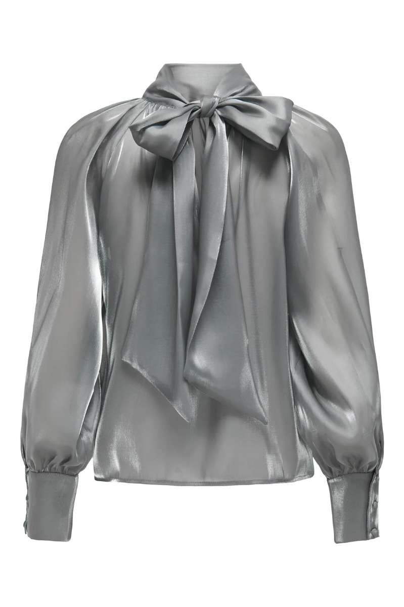 JDY - Bluse - Jdydani L/S Bow Top - Silver